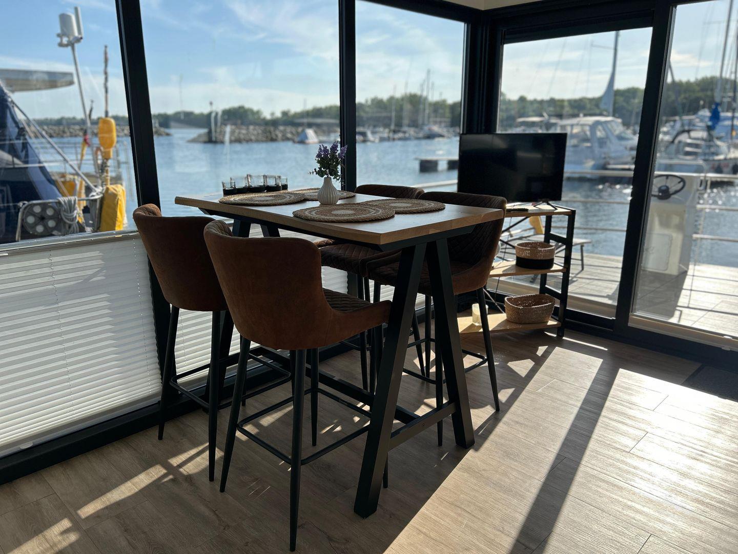 15 qm Terrasse am Bug, möbliert, + Dachterrasse 25 qm, Kostenfreier Parkplatz in der Nähe des Hafens