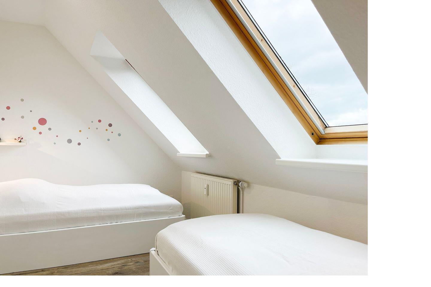 Ein Duschbad in der oberen Etage steht dir ebenfalls zur Verfügung.