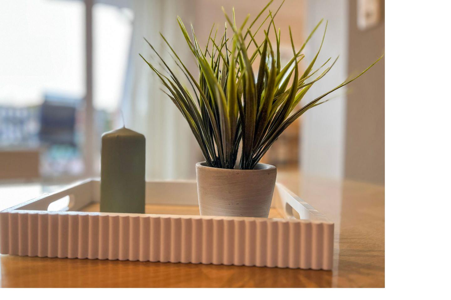 Die Ferienwohnung ist hochwertig ausgestattet. Im unteren Bereich befindet sich das Wohnzimmer. Hier verfügst du über einen Flachbildfernseher, einen Blu-Ray/DVD-Player und ein Radio. Eine Doppelschlafcouch (ca.130 x 190 cm) bietet einen komfortablen Schlafplatz. Vom Wohnbereich hast du Zugang zur möblierten Sonnenterrasse.