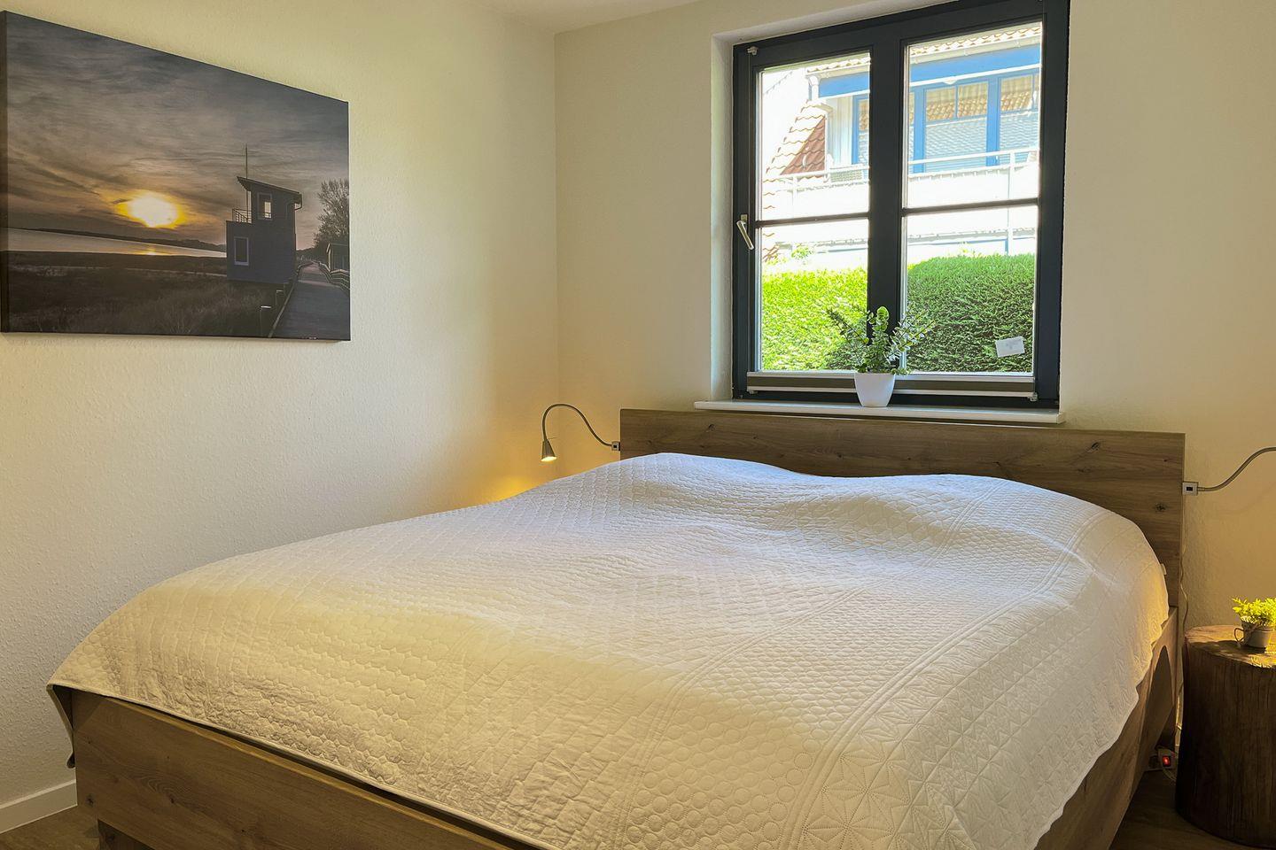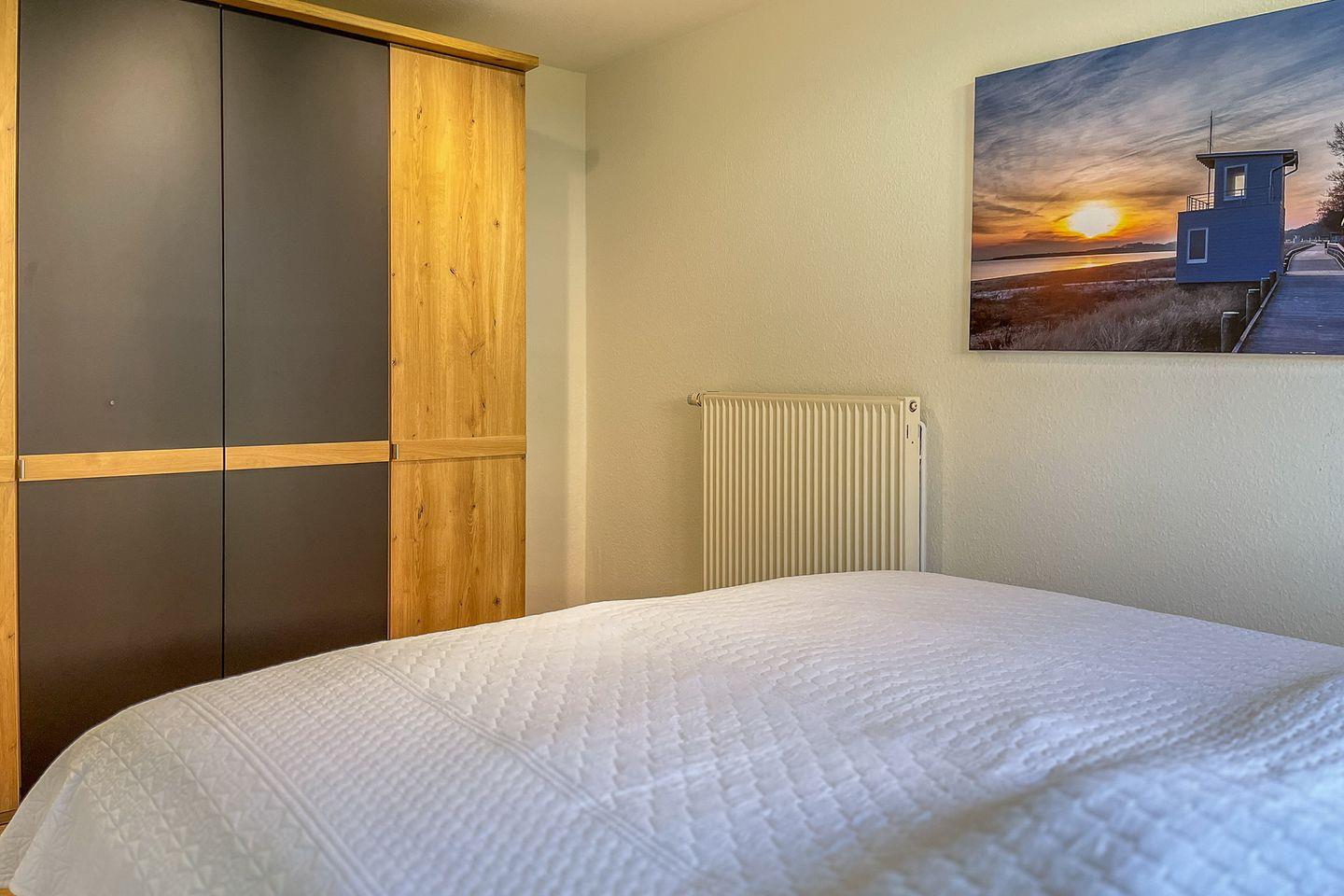 Das Doppelbett im Schlafzimmer sorgt für einen erholsamen Schlaf. Der Kleiderschrank bietet Platz für deine gesamte Urlaubsgarderobe. Verdunklung ist selbstverständlich vorhanden.