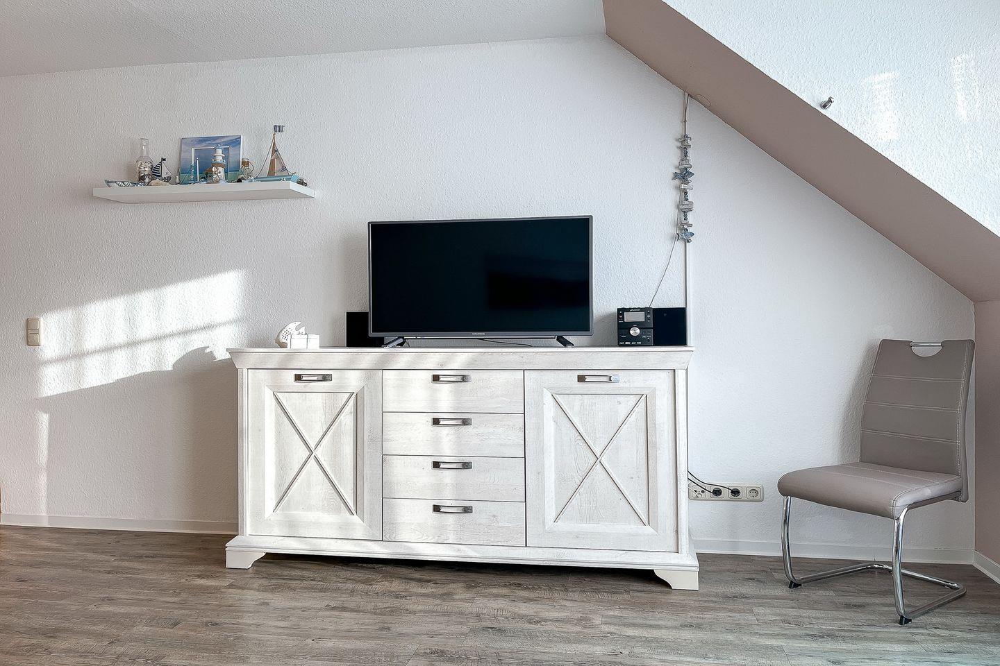 Für die Unterhaltung sind zwei Fernseher, eine HiFi-Anlage und eine Auswahl an Spielen und Büchern vorhanden, sodass auch bei schlechterem Wetter keine Langeweile aufkommt. Die Wohnung ist geschmackvoll und gemütlich eingerichtet und bietet mit Vinylböden nicht nur eine ansprechende Optik, sondern auch ein angenehmes Wohnklima. Zudem sorgen der zeitgemäße Komfort und die liebevollen Details für ein behagliches Ambiente.