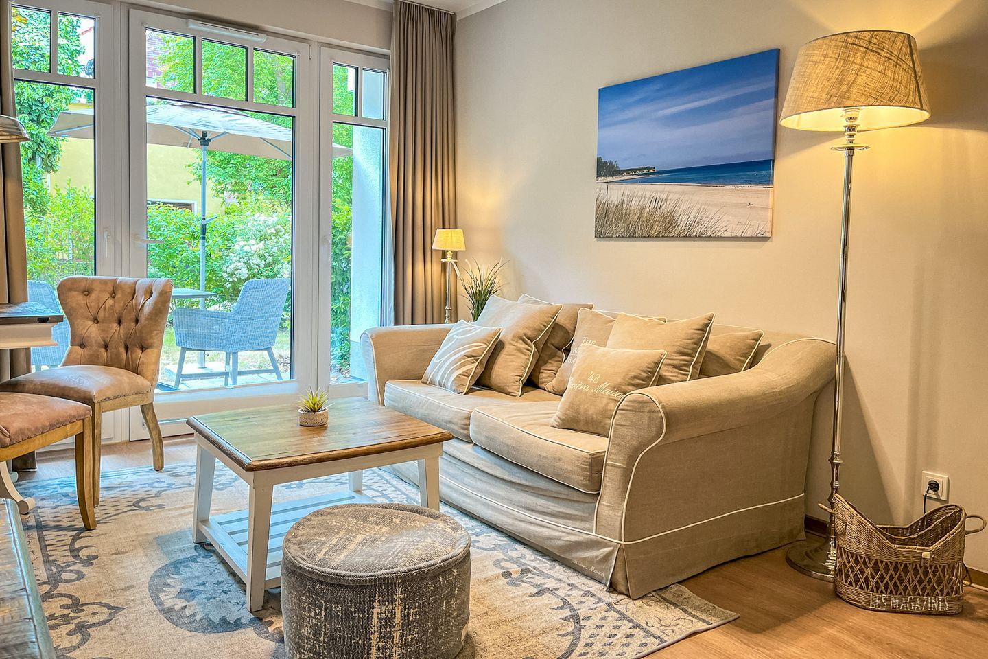 Die Wohnung liegt im Erdgeschoss und bietet auf ca. 40?m² ein komfortables Zuhause mit Wohn-Essbereich, offene Küchenzeile, Schlafzimmer, Duschbad und Terrasse für Deinen Urlaub – nur wenige Schritte vom feinsandigen Ostseestrand entfernt.