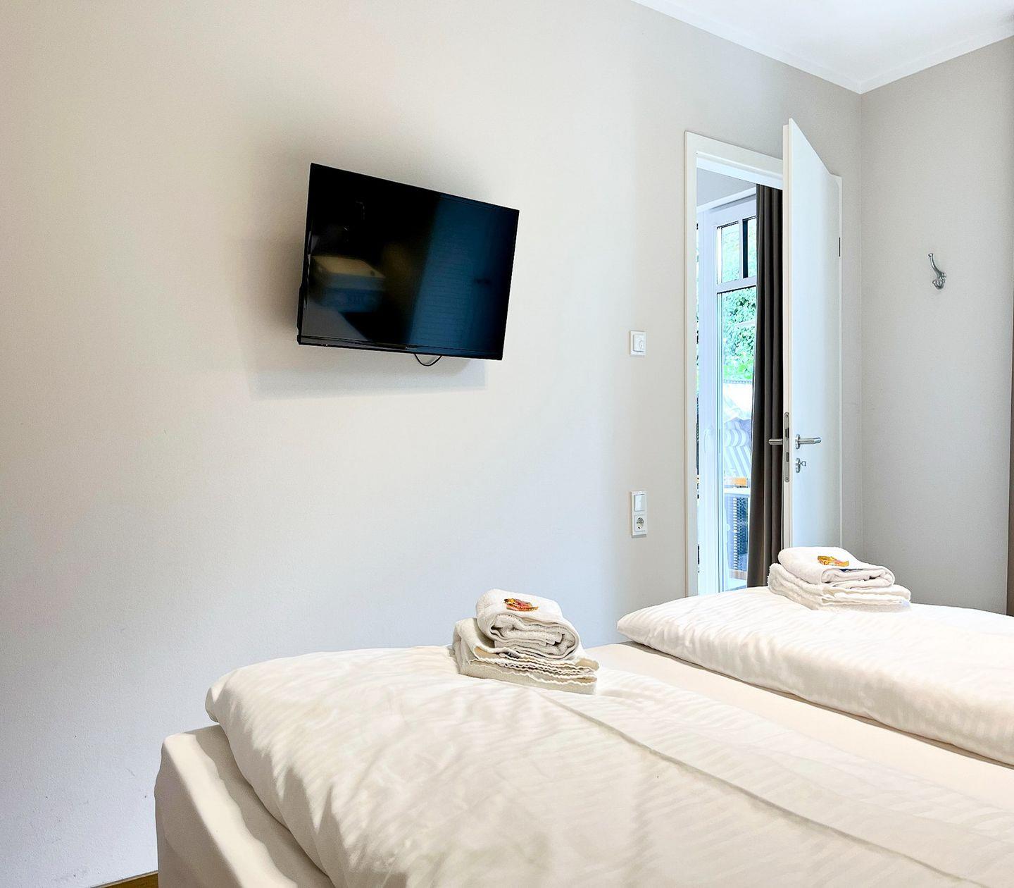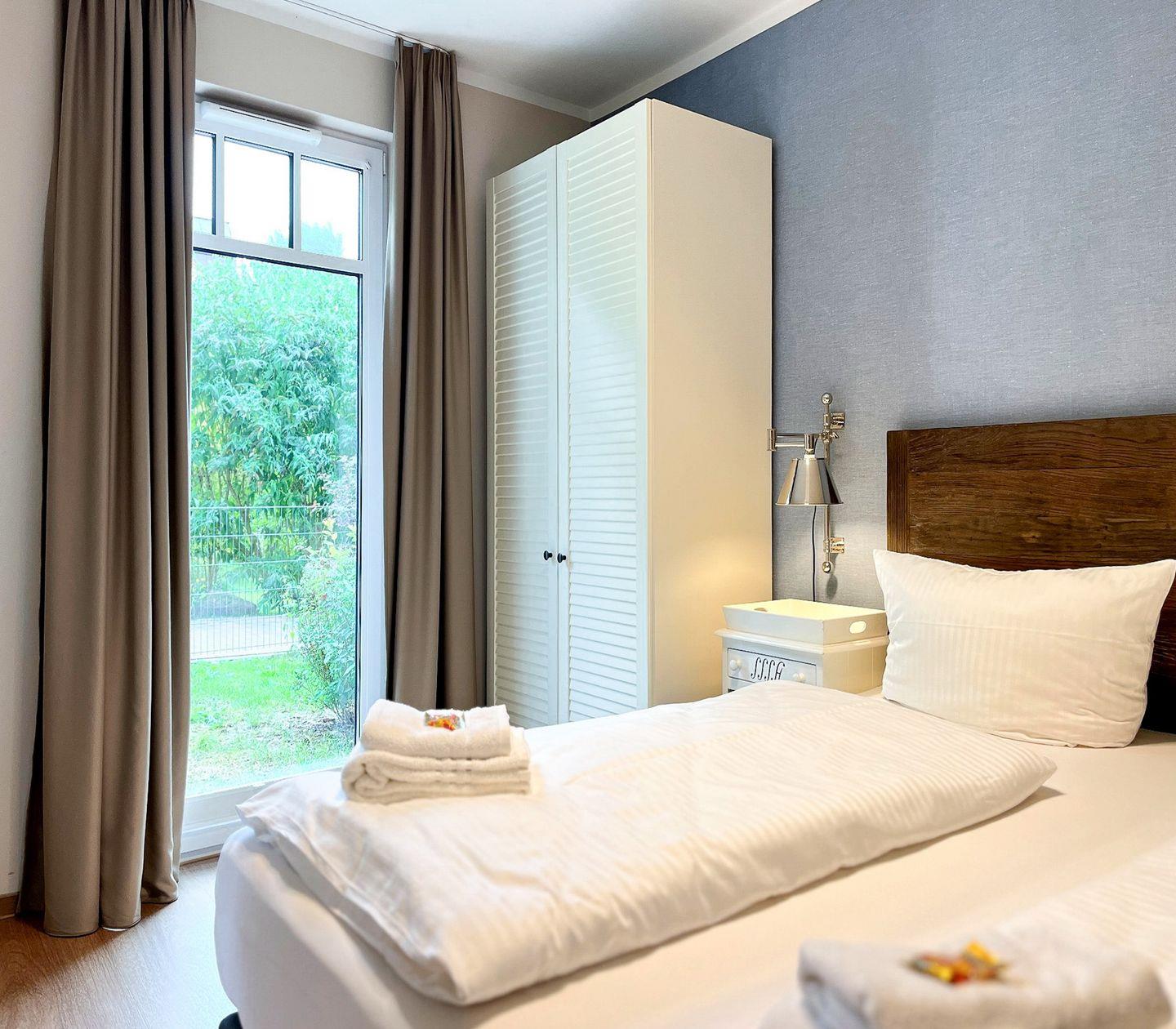 Im separaten Schlafzimmer befindet sich ein gemütliches Doppelbett (2x 90x200?cm), das für erholsamen Schlaf sorgt.