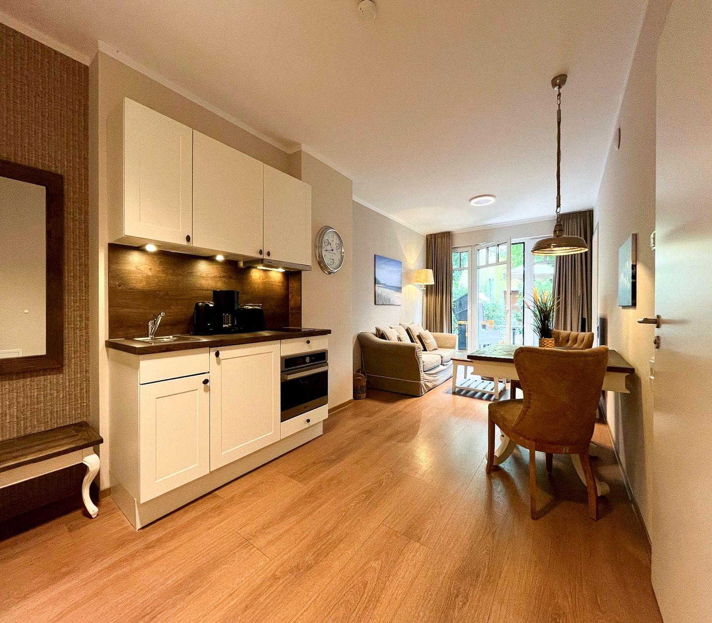Das Apartment liegt im Erdgeschoss und bietet ca. 44?m² Wohnfläche. Mit ihrer praktischen Raumaufteilung und dem liebevoll ausgewählten Interieur eignet sich die Unterkunft ideal für Paare oder Einzelreisende, die Wert auf Komfort und Ostseenähe legen. Die Wohnung ist zudem Rollstuhlgeeignet.