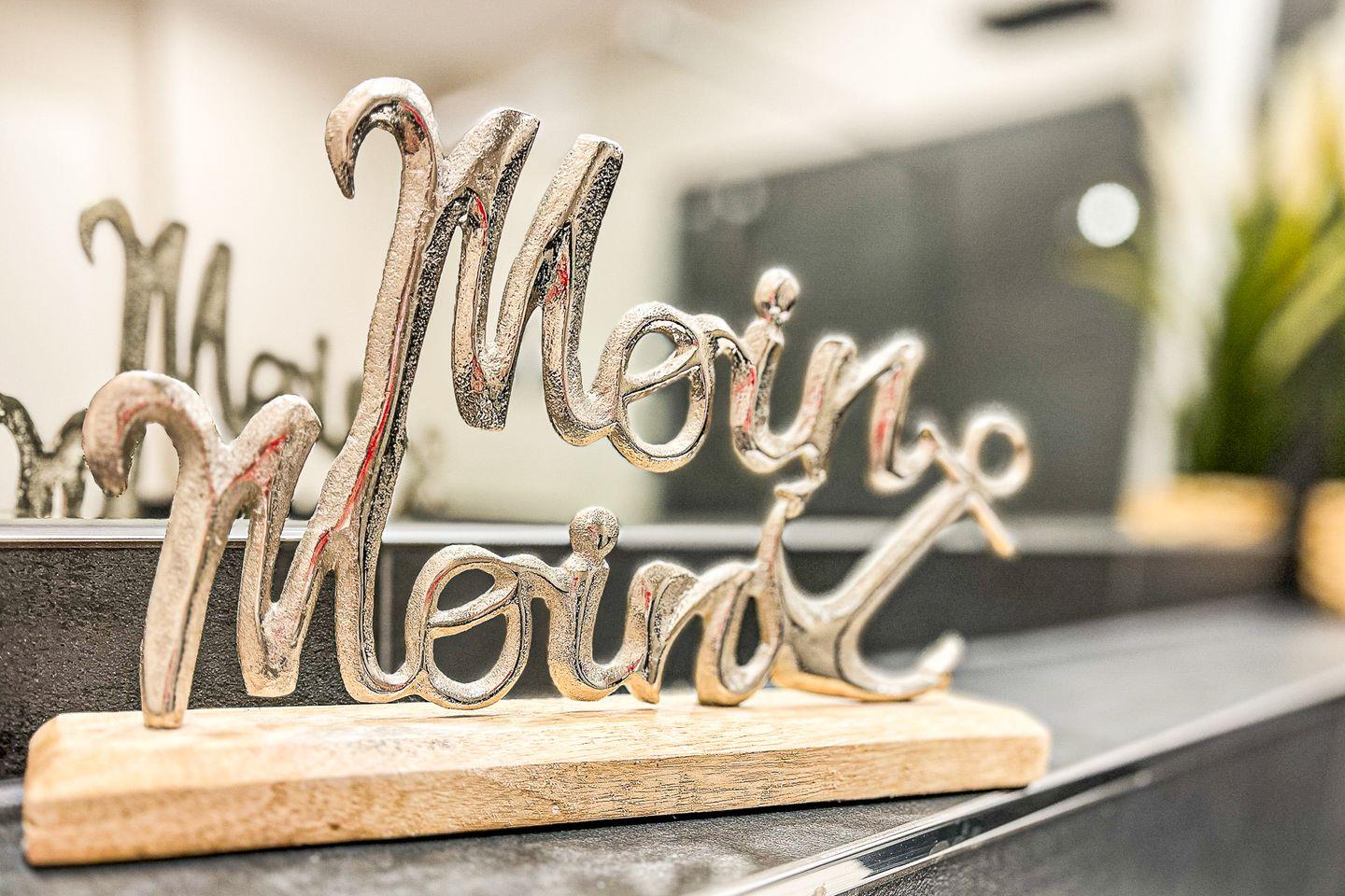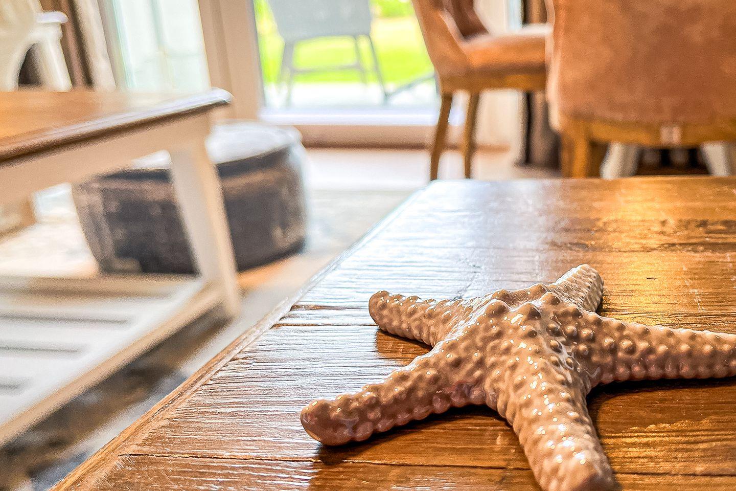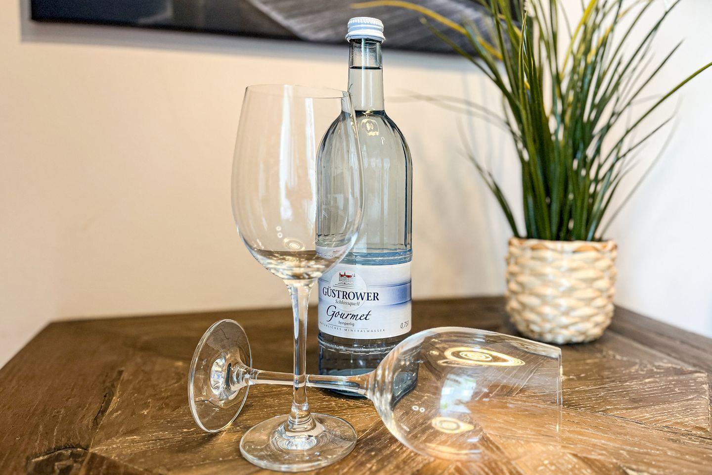 Die integrierte Küche ist voll ausgestattet: Cerankochfeld, Backofen, Kühlschrank mit Gefrierfach, Spülmaschine, Kaffeemaschine, Wasserkocher, Toaster sowie sämtliches Koch- und Essgeschirr stehen zur Verfügung – perfekt für die Selbstverpflegung.