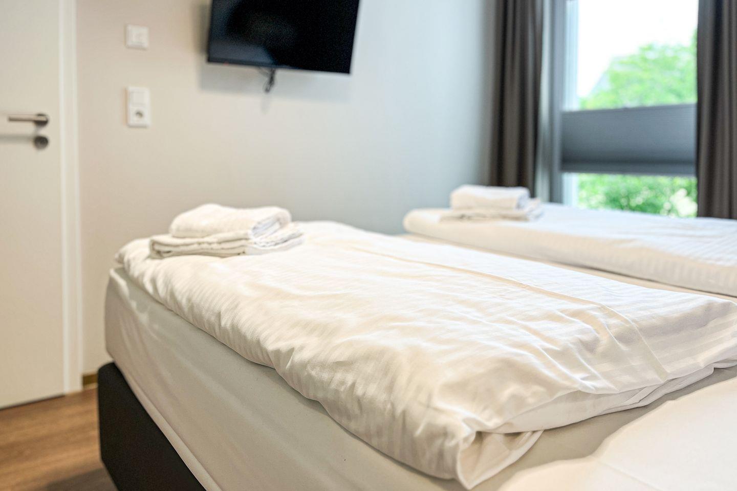 Im separaten Schlafzimmer erwartet Dich ein bequemes Doppelbett (2x 90x200?cm) sowie ein zweiter Fernseher – ideal für entspannte Abende.