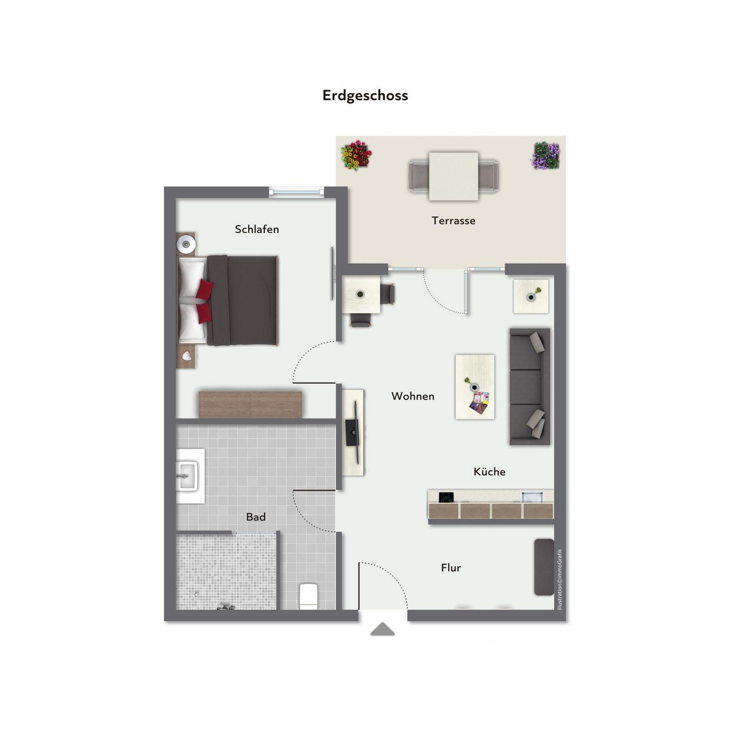 Ein Highlight ist die Terrasse mit Gartenmöbeln – hier kannst Du Deinen Morgenkaffee im Freien genießen oder entspannt den Tag ausklingen lassen.
