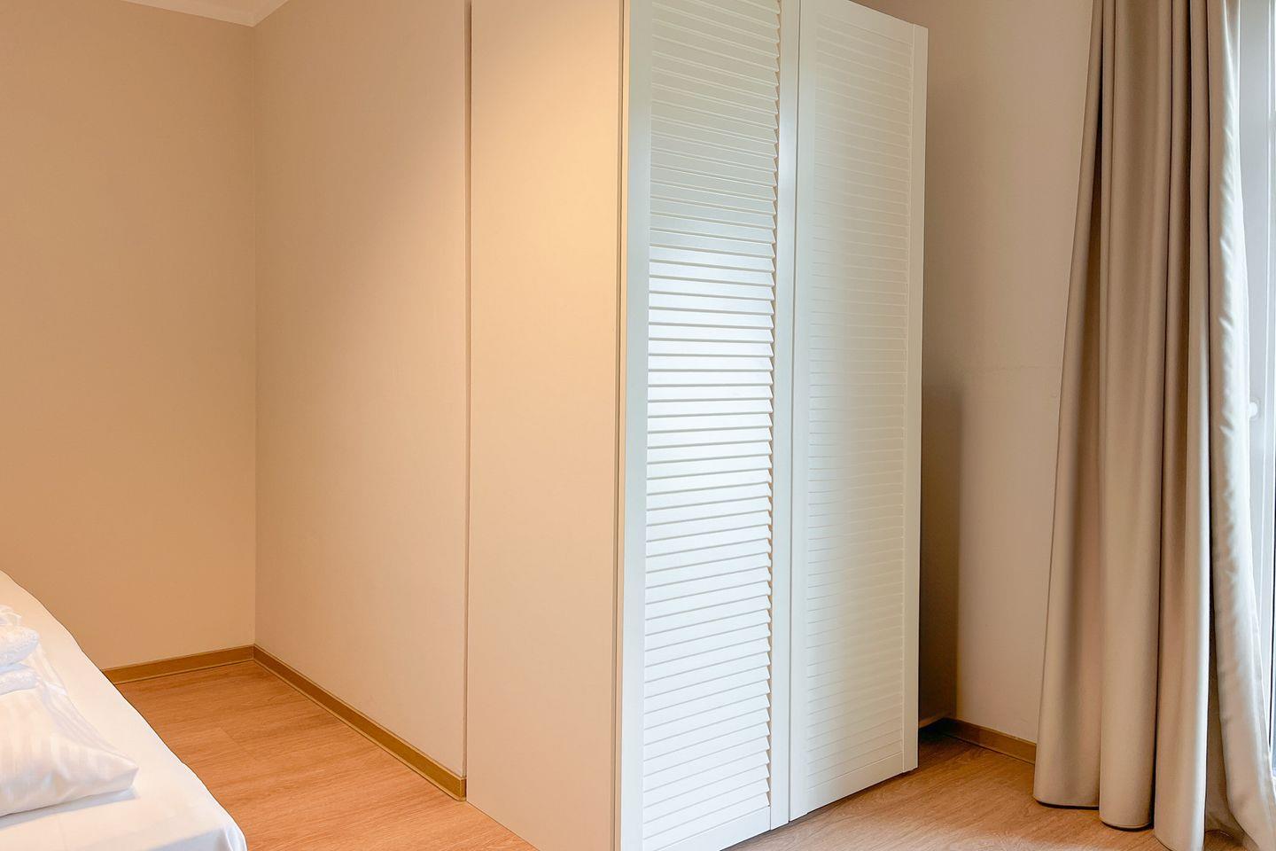 Im separaten Schlafzimmer befindet sich ein Doppelbett (2x 90x200?cm) sowie ein zweiter Fernseher, sodass Du auch hier entspannte Abende verbringen kannst.