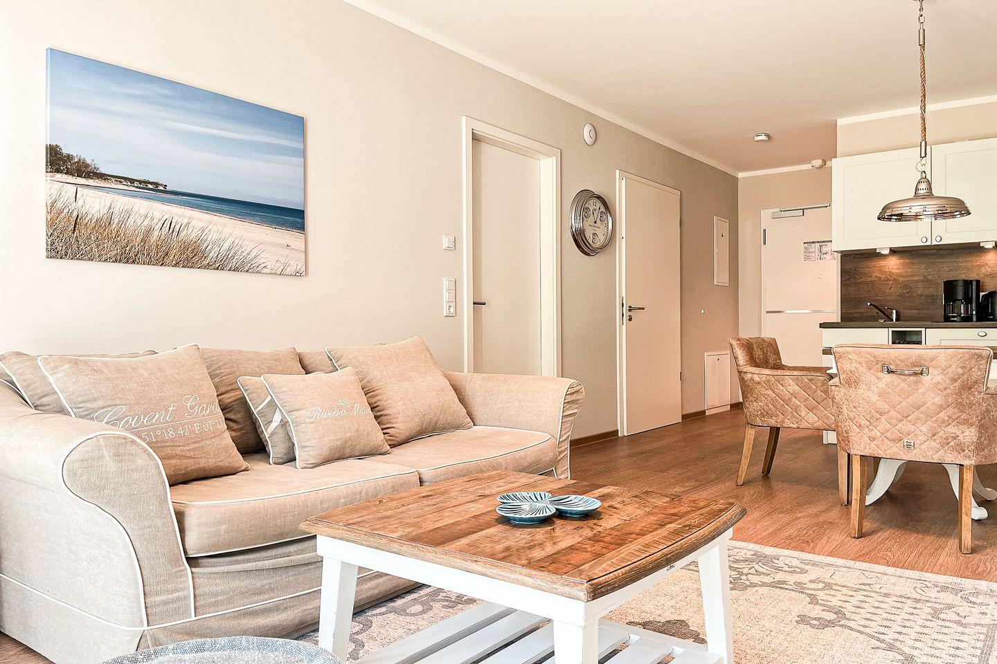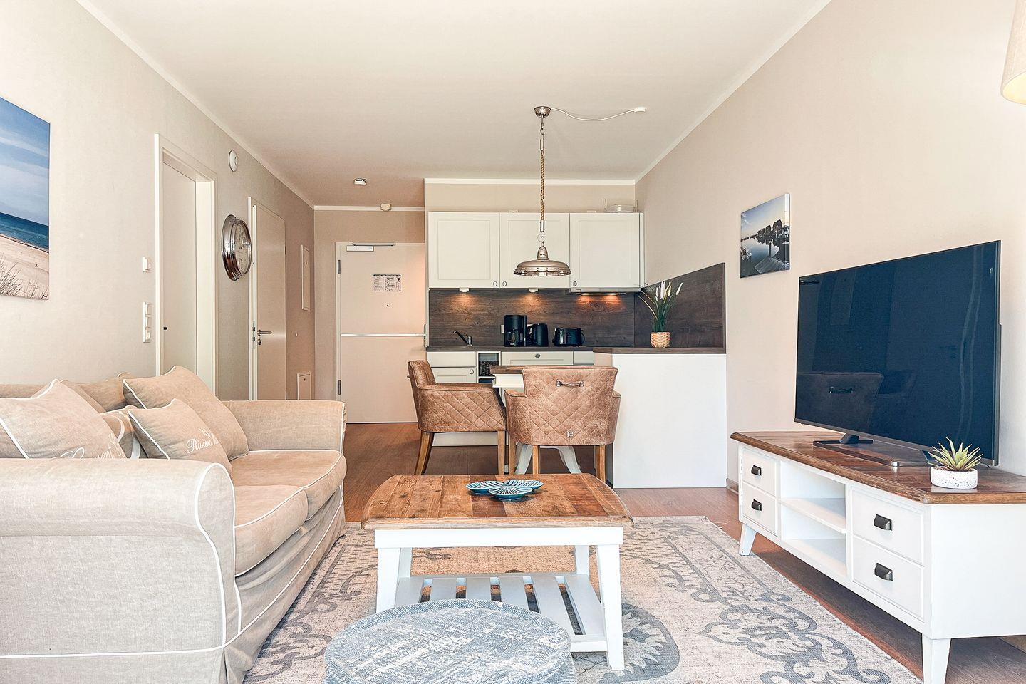 Das Apartment liegt im Erdgeschoss und überzeugt mit ca. 48?m² Wohnfläche, durchdachter Raumaufteilung und einer hochwertigen Einrichtung. Ideal für Paare oder Alleinreisende, die Komfort und Ostseenähe zu schätzen wissen.