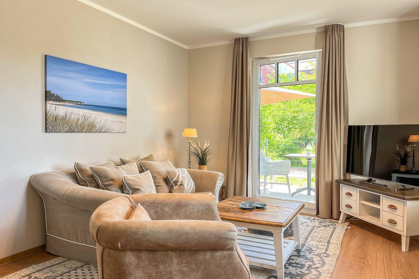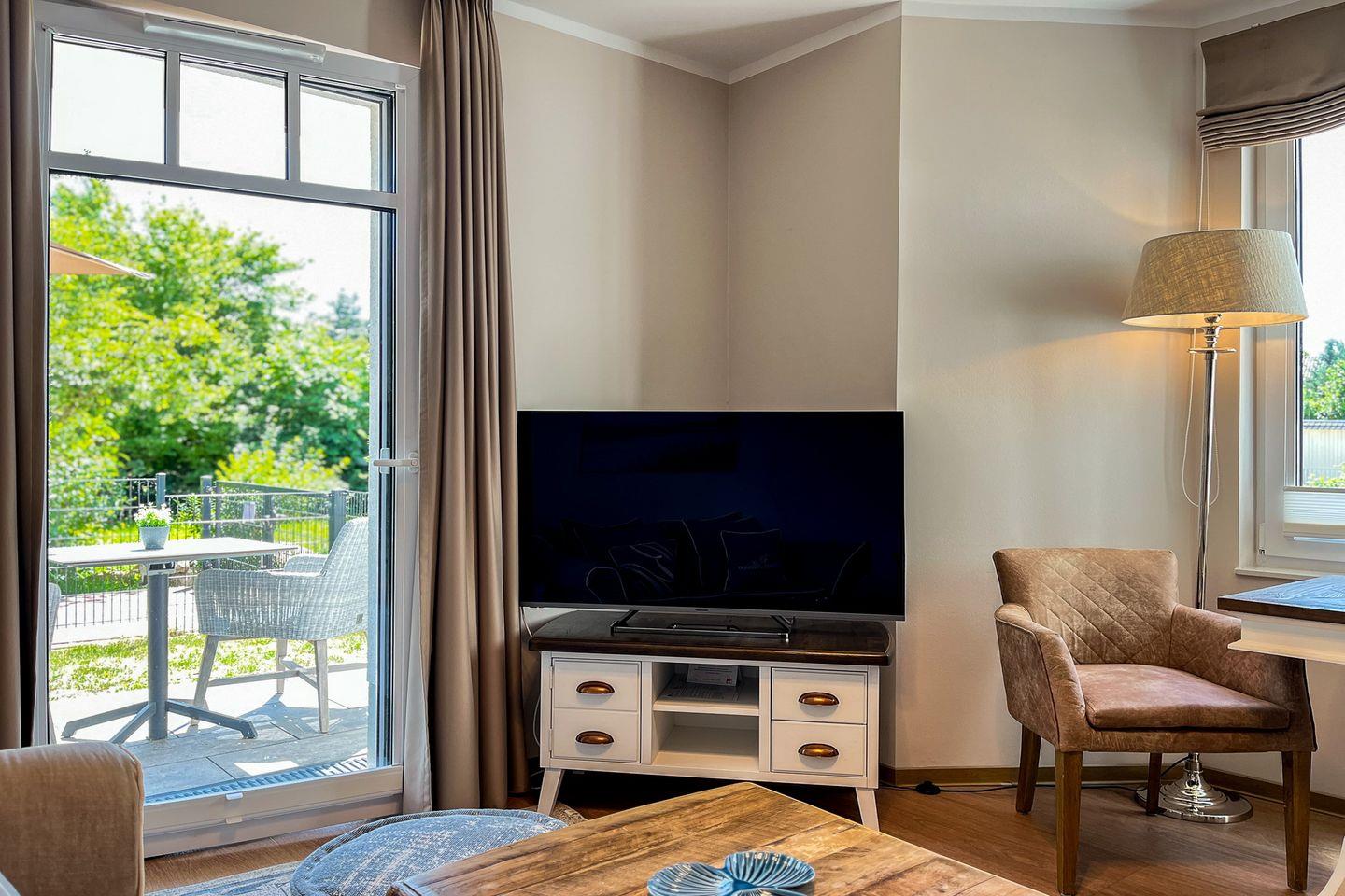 Dieses Apartment befindet sich im Erdgeschoss und bietet auf ca. 45 m² eine hochwertige Ausstattung sowie ein angenehmes Wohnambiente – ideal für einen erholsamen Urlaub an der Ostsee.