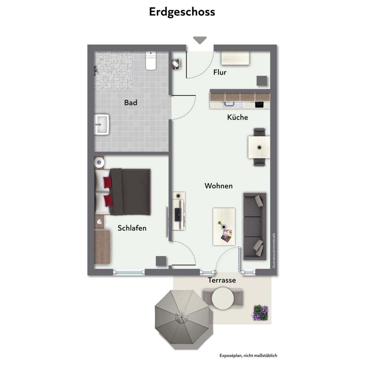Ein besonderes Extra ist die möblierte Terrasse – hier kannst Du die frische Seeluft genießen, die Sonne genießen oder entspannt in den Tag starten. Die Terrasse ist von mittags bis in die späten Nachmittagsstunden sonnig gelegen und bietet eine angenehm ruhige Atmosphäre. Durch die geschützte Lage eignet sie sich ideal zum Lesen, Entspannen oder für gemütliche Mahlzeiten im Freien. Zudem ist von hier aus ein kleiner Blick in Richtung Ostsee möglich.