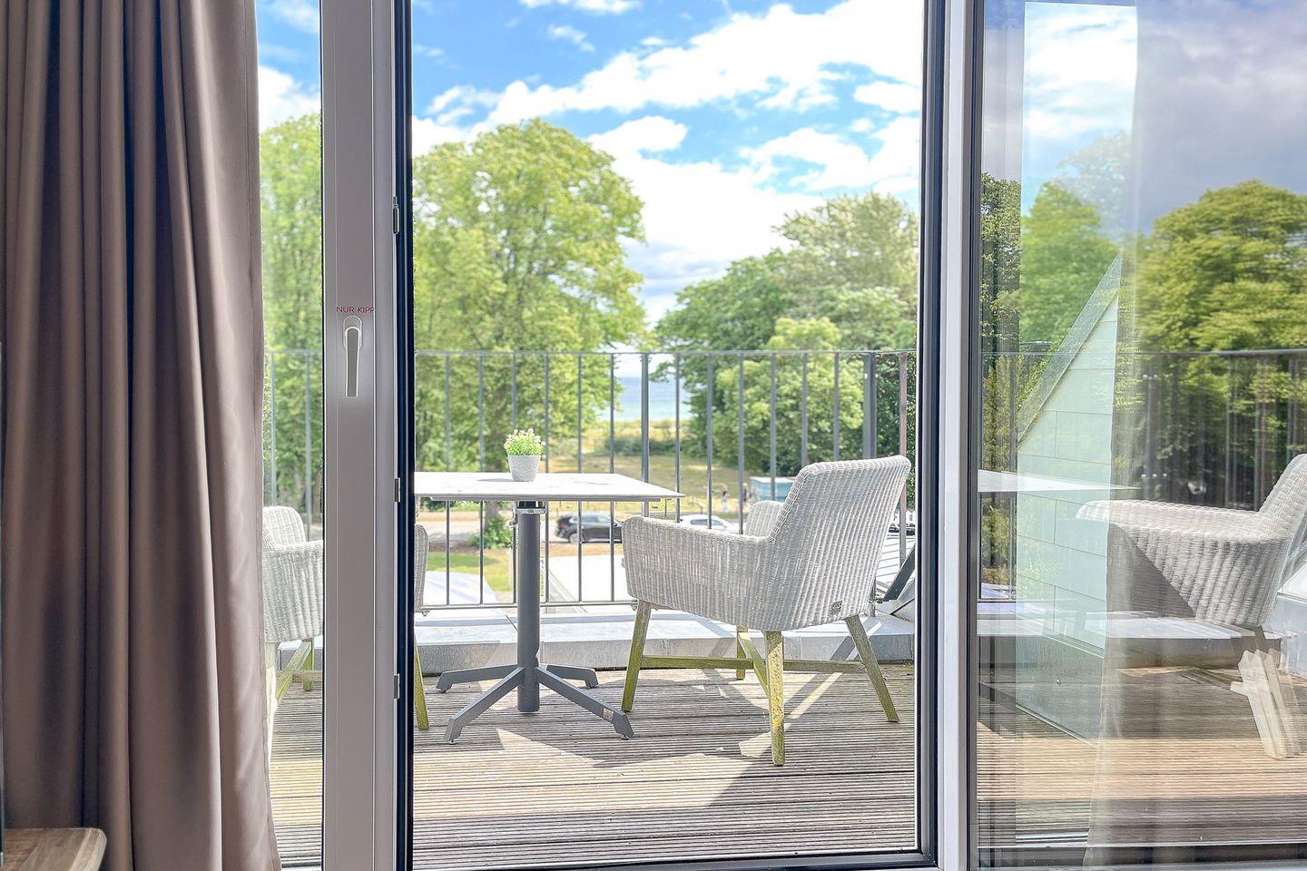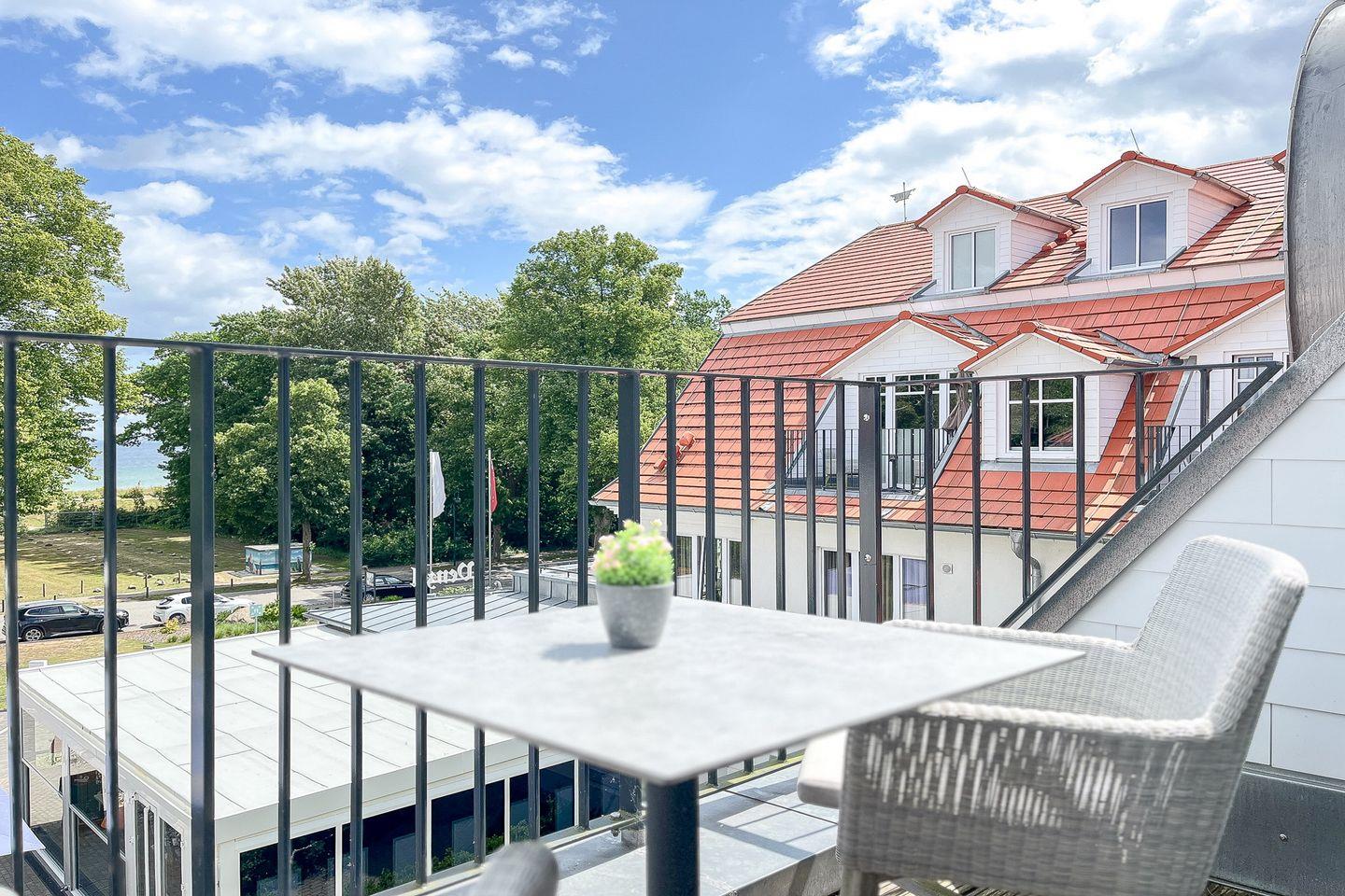 Ein besonderes Highlight ist der möblierte Balkon mit Meerblick – perfekt für ein Frühstück mit Aussicht oder einen entspannten Tagesausklang bei frischer Ostseeluft.