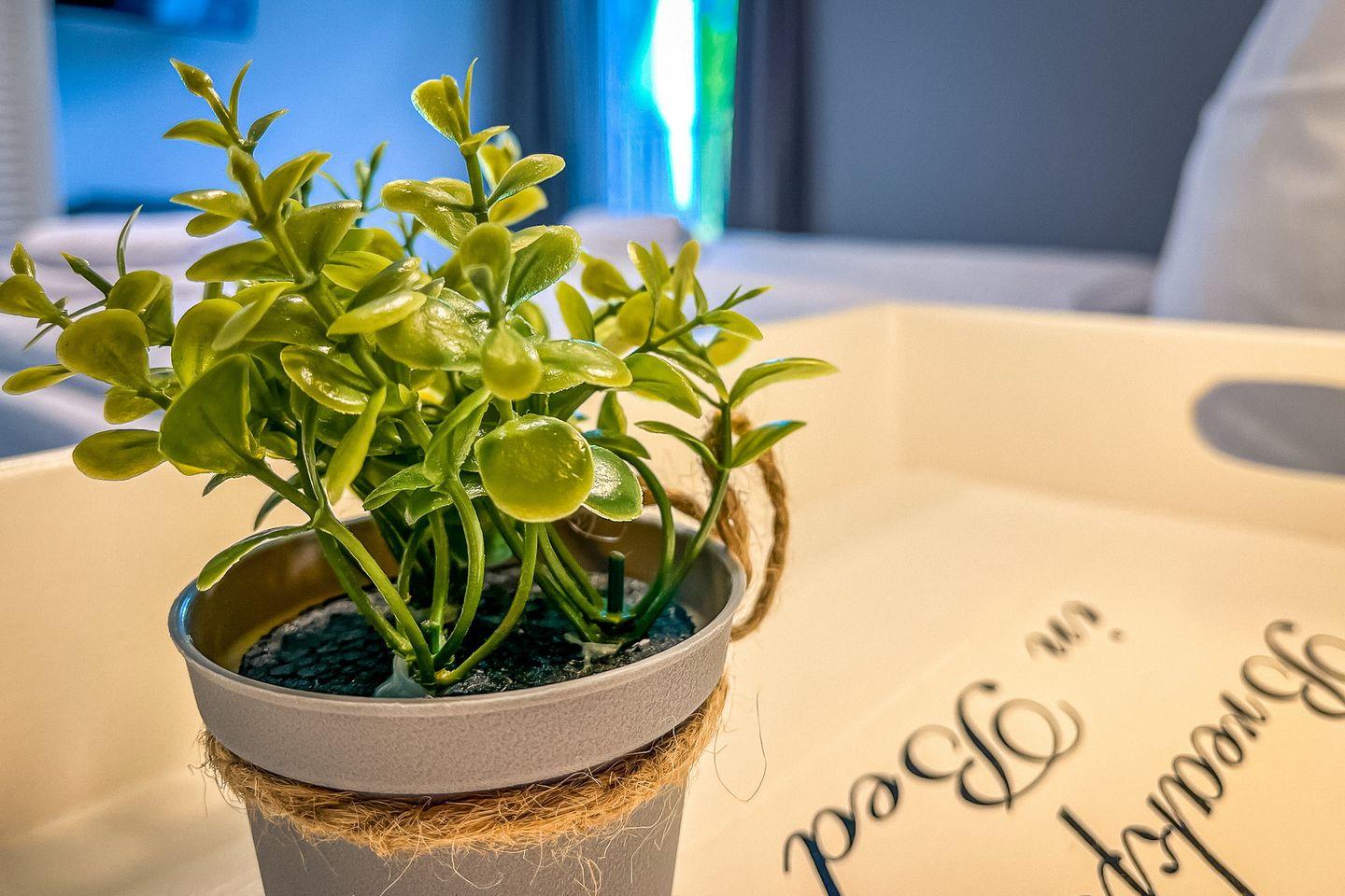 Das moderne Bad verfügt über eine bodengleiche Dusche, WC, Waschbecken, Haartrockner und Kosmetikspiegel – ideal für Deinen erfrischenden Start in den Tag.