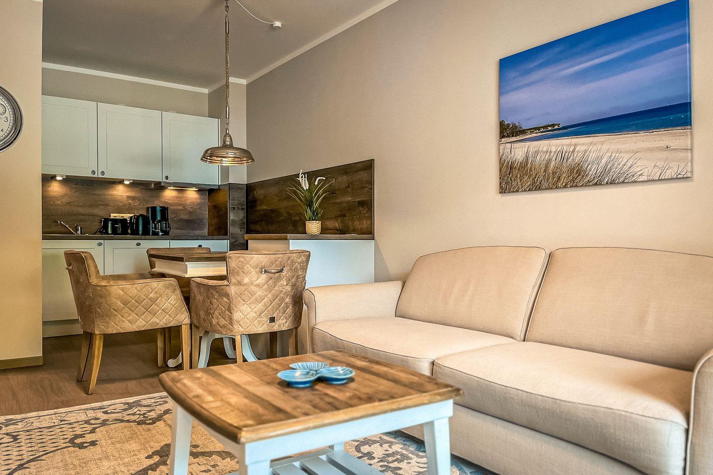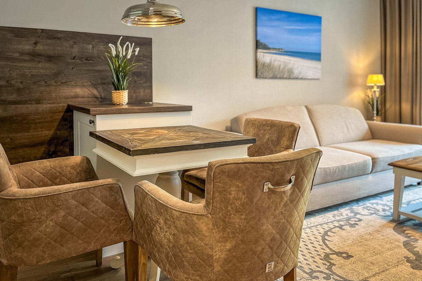 Die Ferienwohnung 43 im Baltischen Hof in Boltenhagen ist eine stilvolle 2-Zimmer-Wohnung für bis zu drei Personen.