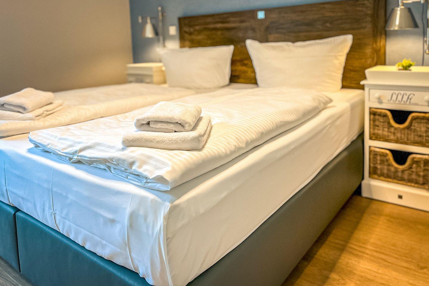 Als Service findest Du im Balitschen Hof bereits bezogene Betten sowie Handtuchsets für alle Gäste vor.