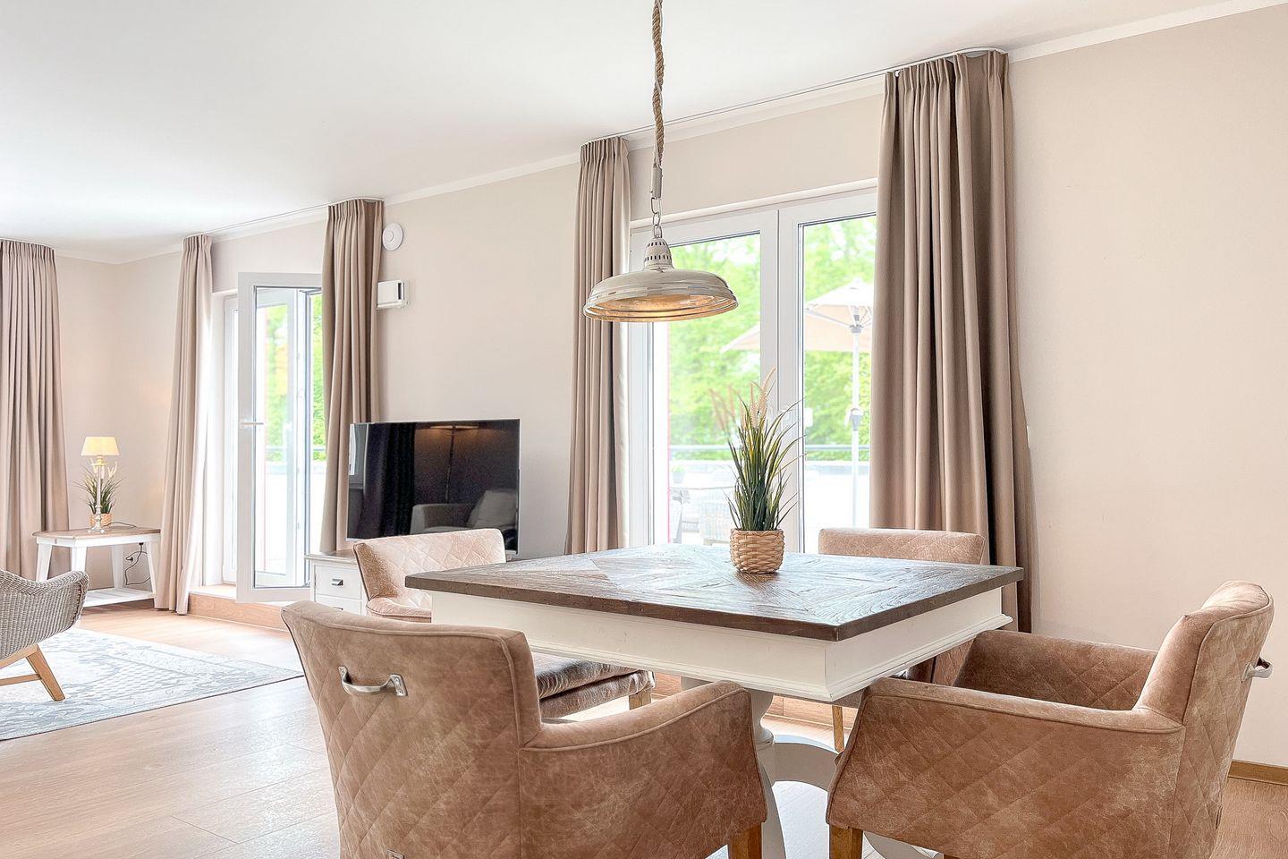 Die Ferienwohnung 45 im Baltischen Hof in Boltenhagen ist eine geschmackvolle 2-Zimmer-Wohnung für bis zu vier Personen.