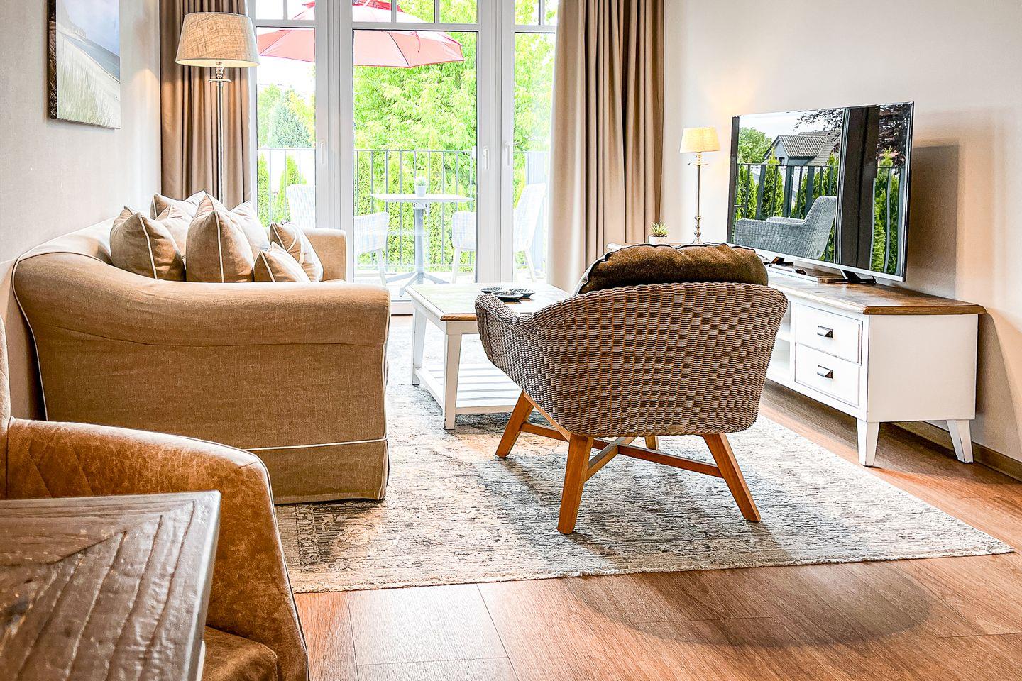 Das Apartment liegt im 1. Stock und bietet auf ca. 48?m² Wohnfläche eine kompakte und gut ausgestattete Rückzugsoase – perfekt für Paare oder Alleinreisende, die Erholung an der Ostsee suchen.