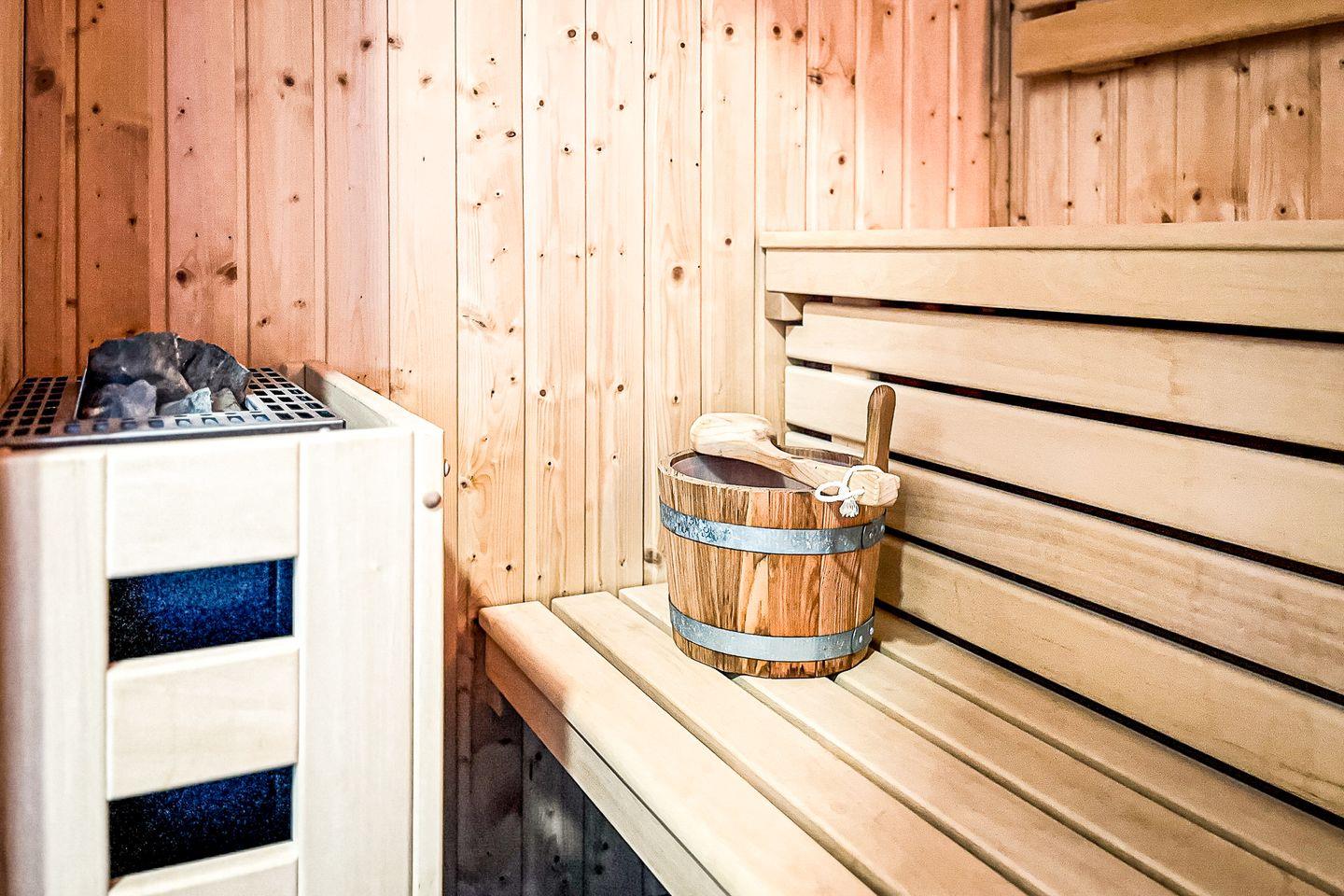 Ein echtes Highlight ist die private Sauna im Apartment – genieße Deine persönliche Wohlfühlzeit ganz flexibel und ungestört.