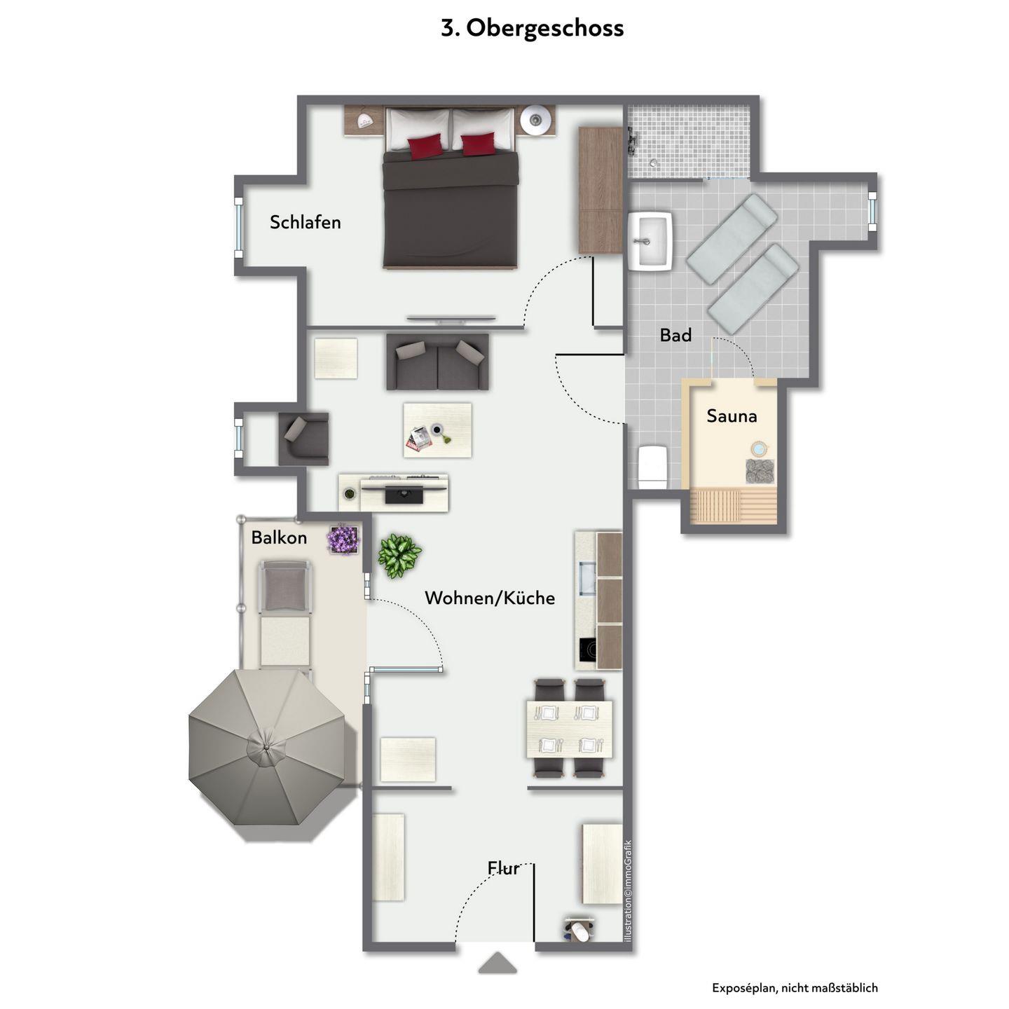 Ein besonderes Highlight dieser Wohnung ist die private Sauna zur Eigennutzung. Hier kannst Du ganz für Dich allein entspannen und den Tag wohlig-warm ausklingen lassen – ein Luxus, den nur wenige Apartments bieten.