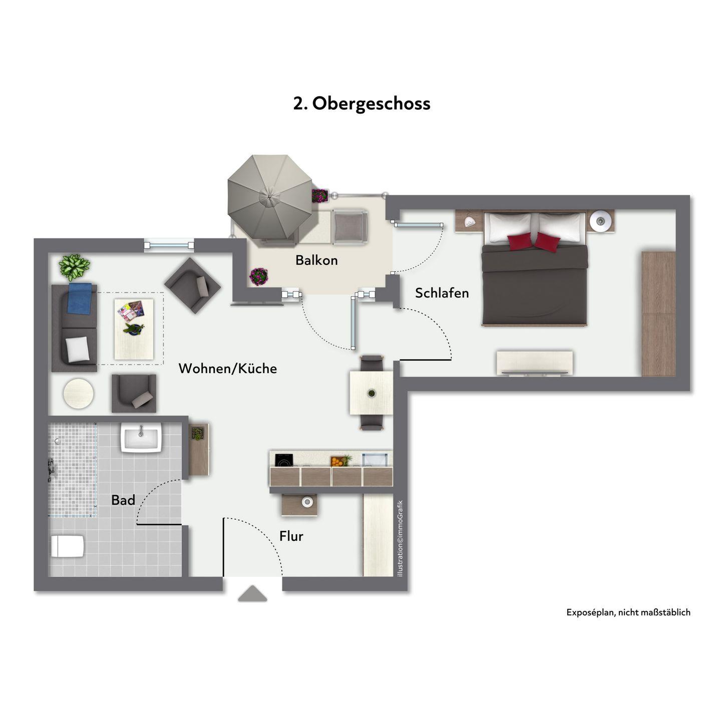 Die Ferienwohnung Nr. 56 in dem strandnahen Baltischen Hof ist eine 2-Zimmer-Wohnung für bis zu 4 Personen. Die Wohnung liegt im 2. Obergeschoss und verfügt über eine Dachterrasse.