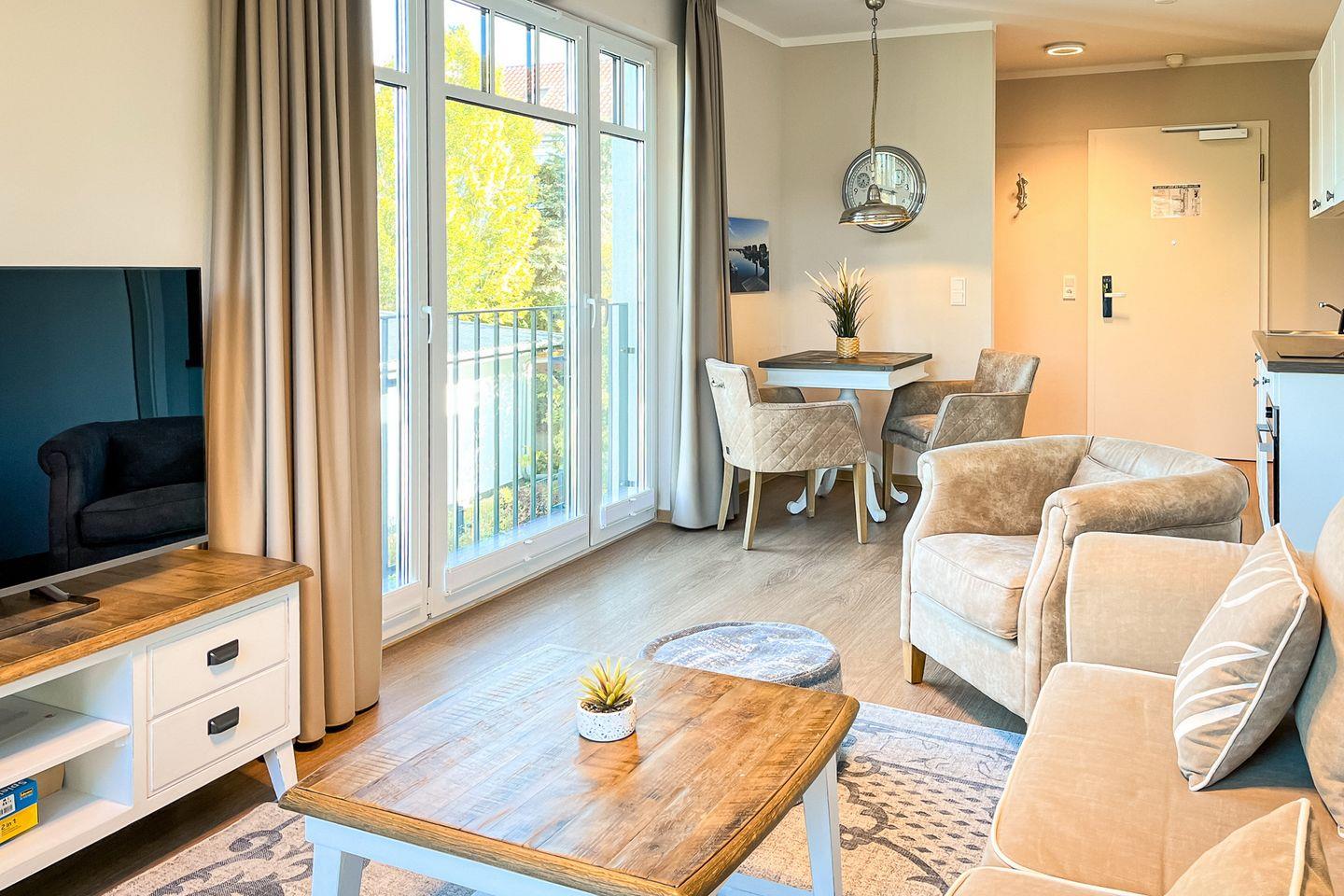 Die Ferienwohnung 31 im Baltischen Hof in Boltenhagen ist eine charmante 2-Zimmer-Wohnung für bis zu zwei Personen.
