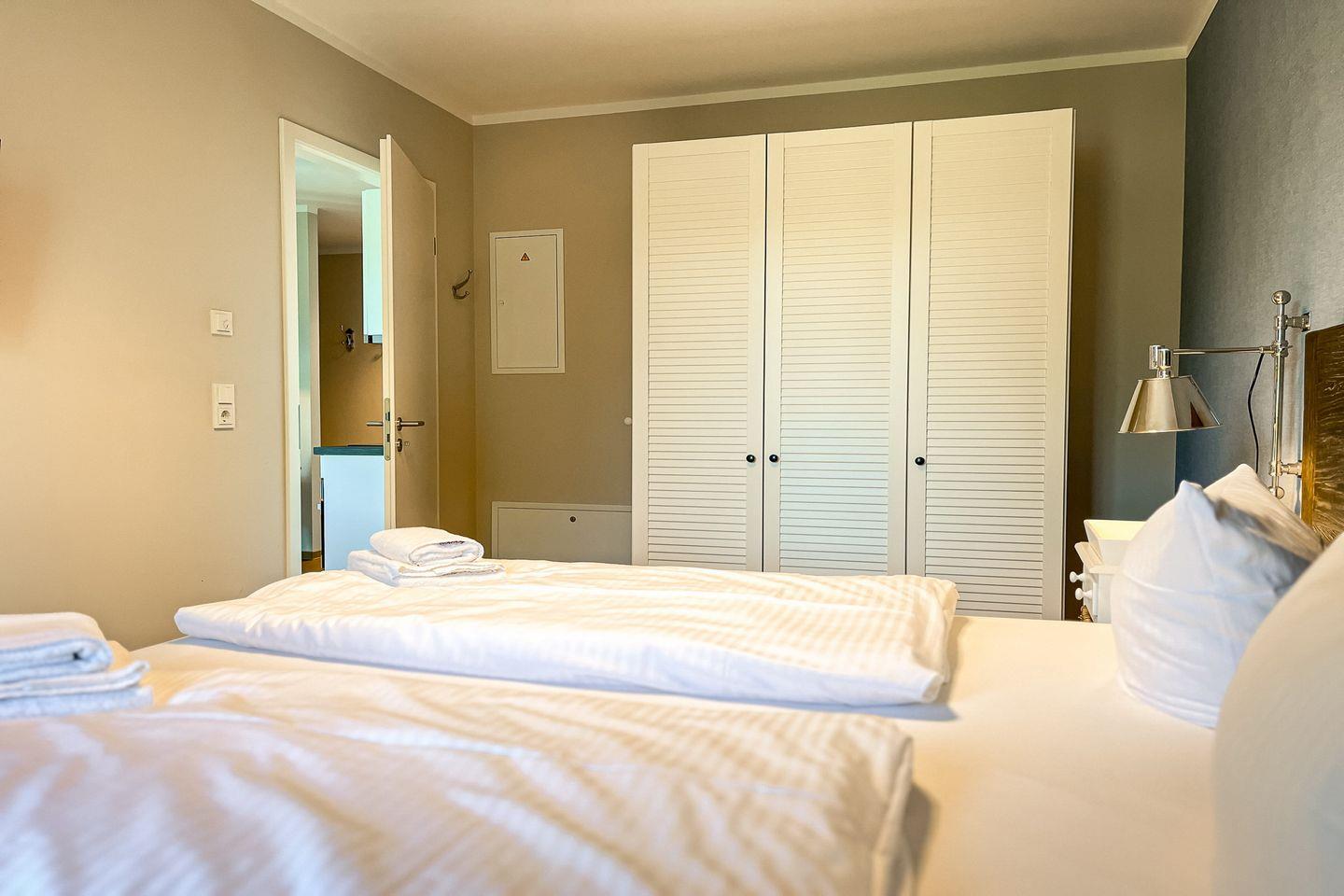 Im separaten Schlafzimmer erwartet Dich ein gemütliches Doppelbett (2x 90x200?cm). Auch hier findest Du einen zusätzlichen TV – für angenehme Abende mit Unterhaltung im Bett.