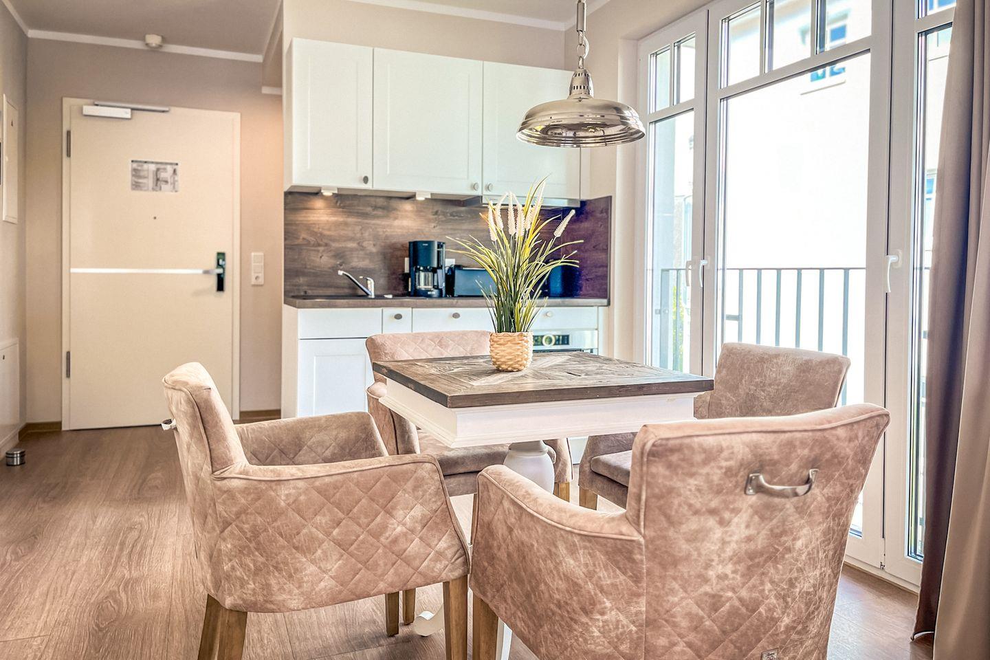 Die Ferienwohnung 41 im Baltischen Hof in Boltenhagen ist eine hochwertige 2-Zimmer-Wohnung für bis zu zwei Personen.