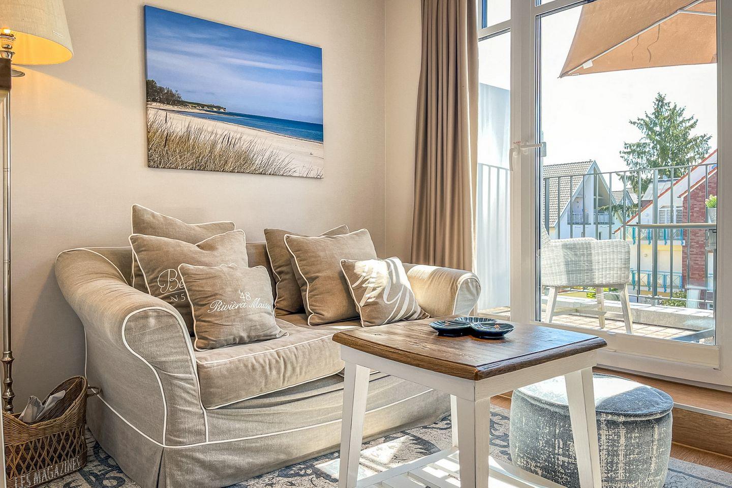 Das Apartment befindet sich im 2. Stock und bietet auf ca. 28?m² Wohnfläche ein stilvolles Zuhause für den Urlaub zu zweit – strandnah und komfortabel.