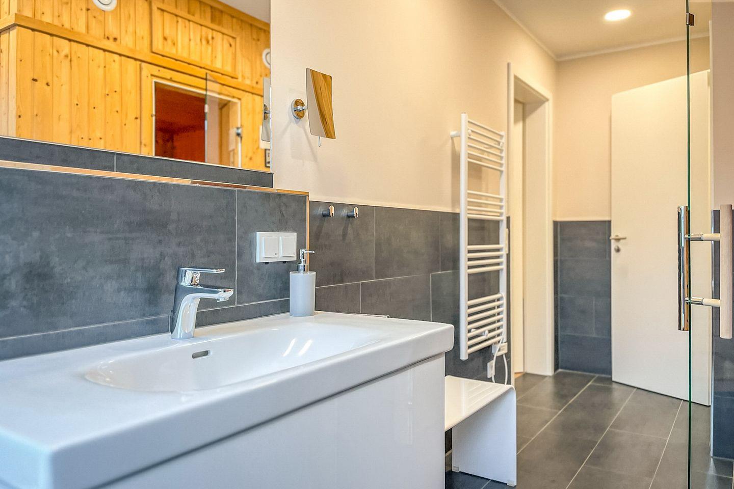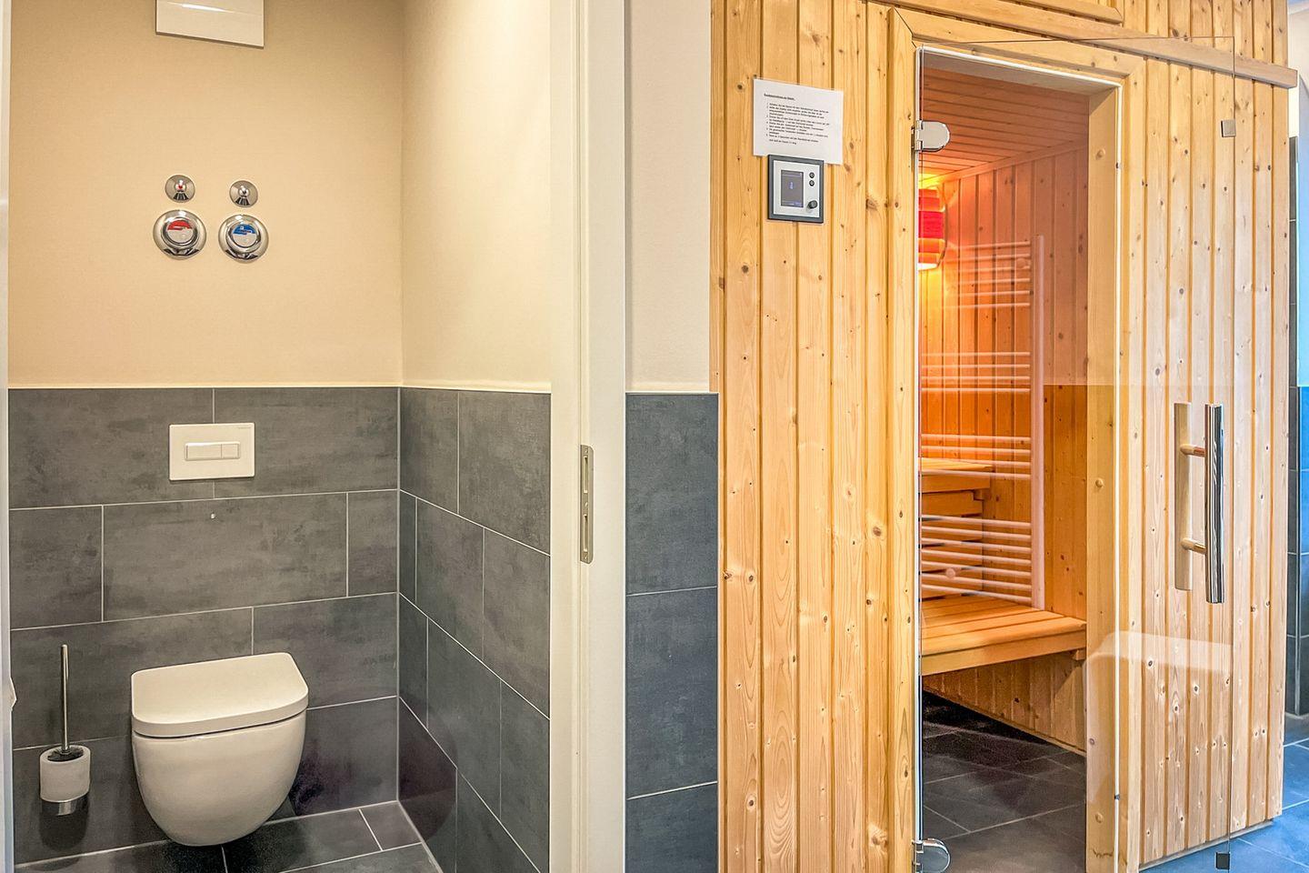 Ein echtes Highlight ist die private Sauna direkt im Apartment – Deine persönliche Wellnessoase für ruhige Stunden ganz nach Deinem Rhythmus.