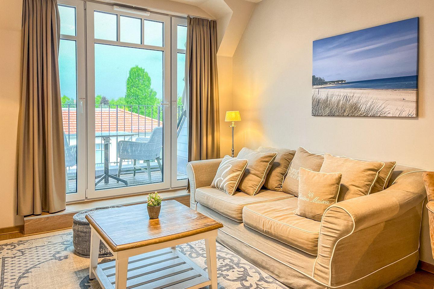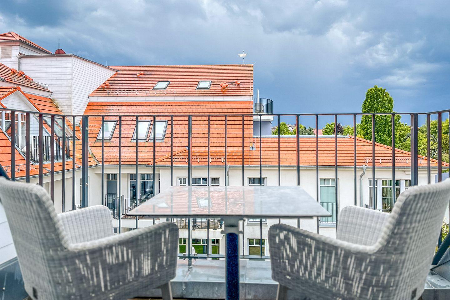 Der möblierte Balkon lädt zum Verweilen an der frischen Ostseeluft ein – perfekt für ein Frühstück in der Morgensonne oder einen entspannten Abend.