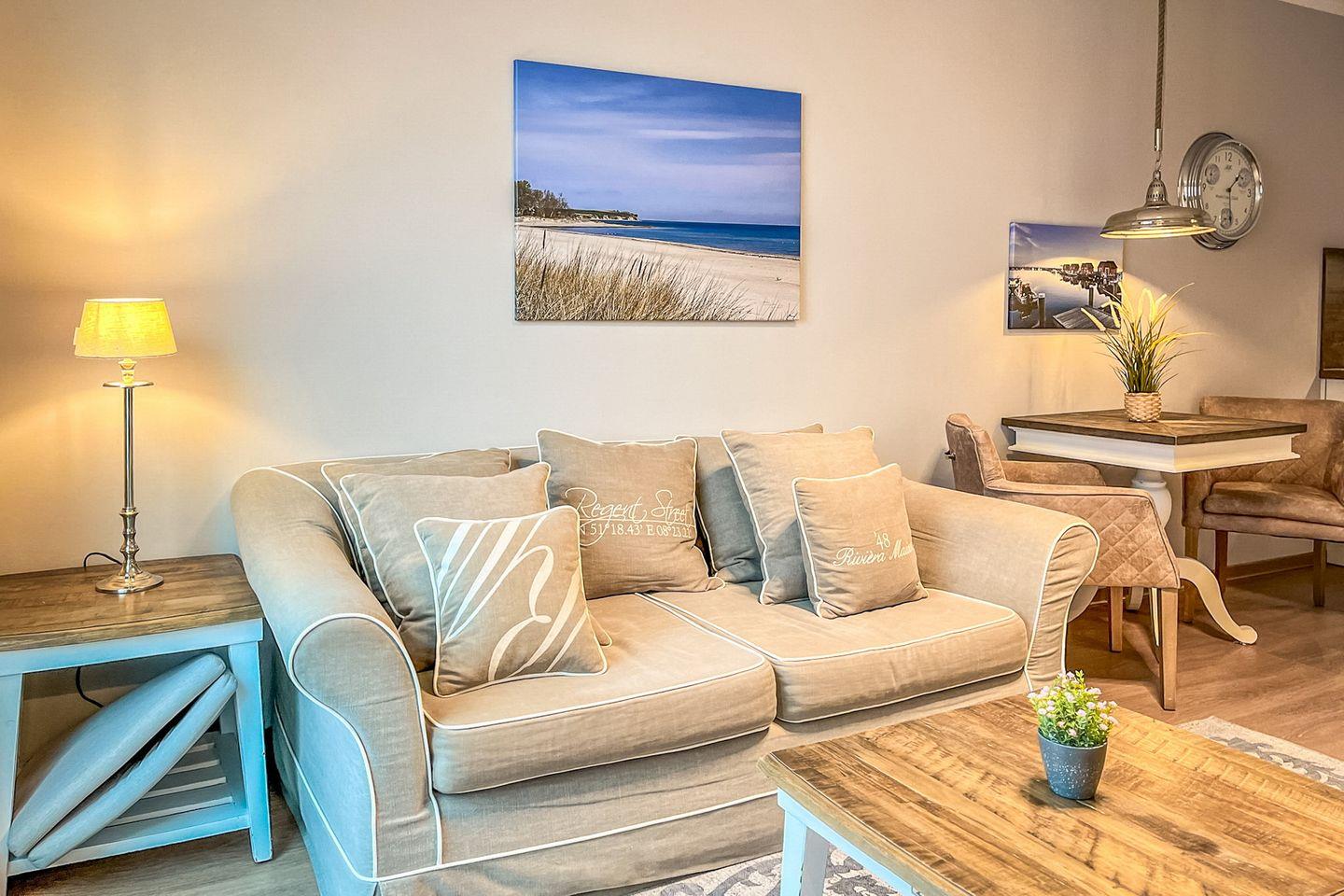 Die Ferienwohnung 57 mit privater Sauna im Baltischen Hof in Boltenhagen ist eine komfortable 2-Zimmer-Wohnung für bis zu zwei Personen.