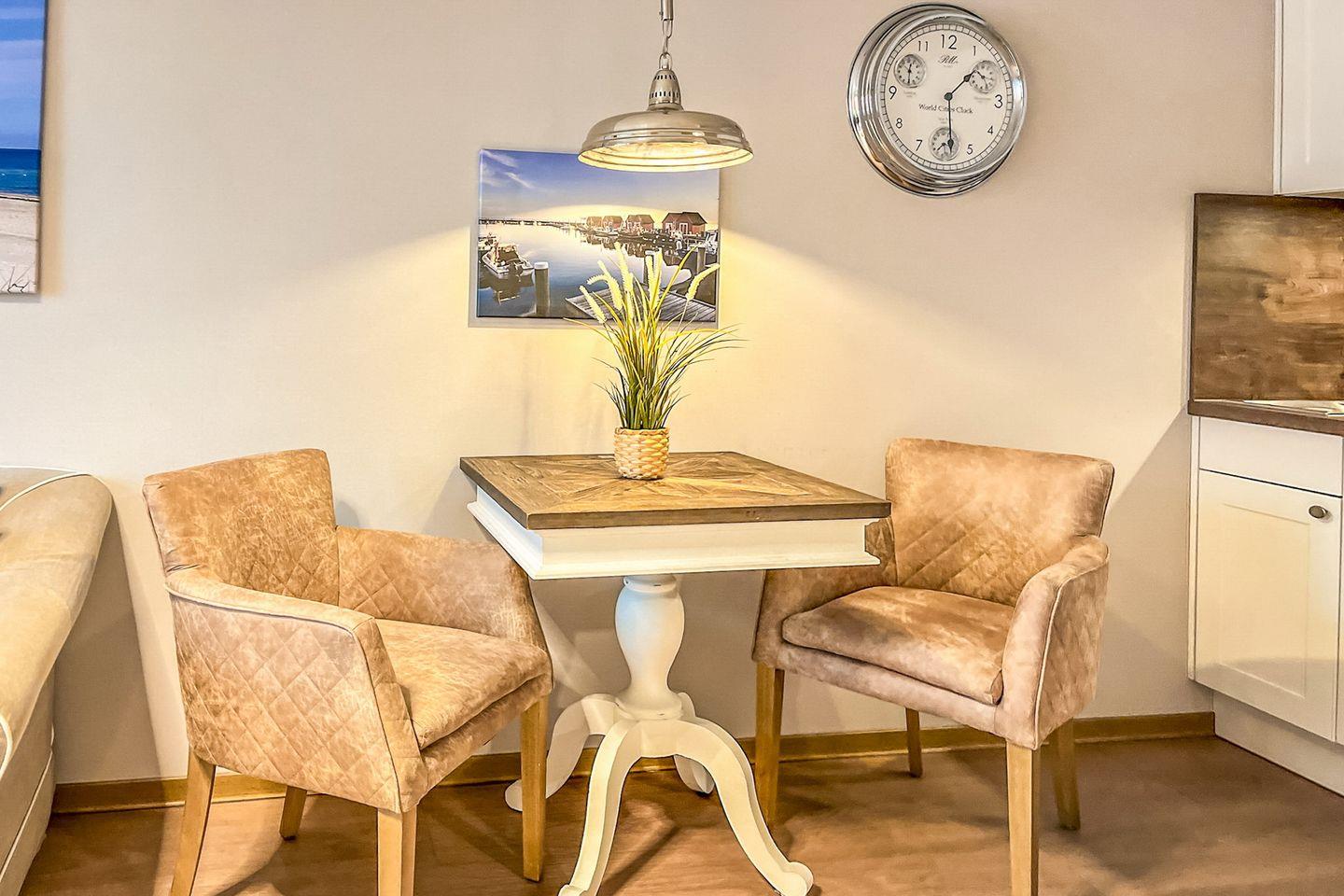 Das hochwertig ausgestattete Apartment im 2. Obergeschoss bietet ca. 50?m² Wohnfläche und überzeugt durch eine moderne Ausstattung, eine durchdachte Raumaufteilung sowie besondere Extras wie eine Klimaanlage – ideal für Paare oder Alleinreisende, die Wert auf Entspannung und Komfort legen.