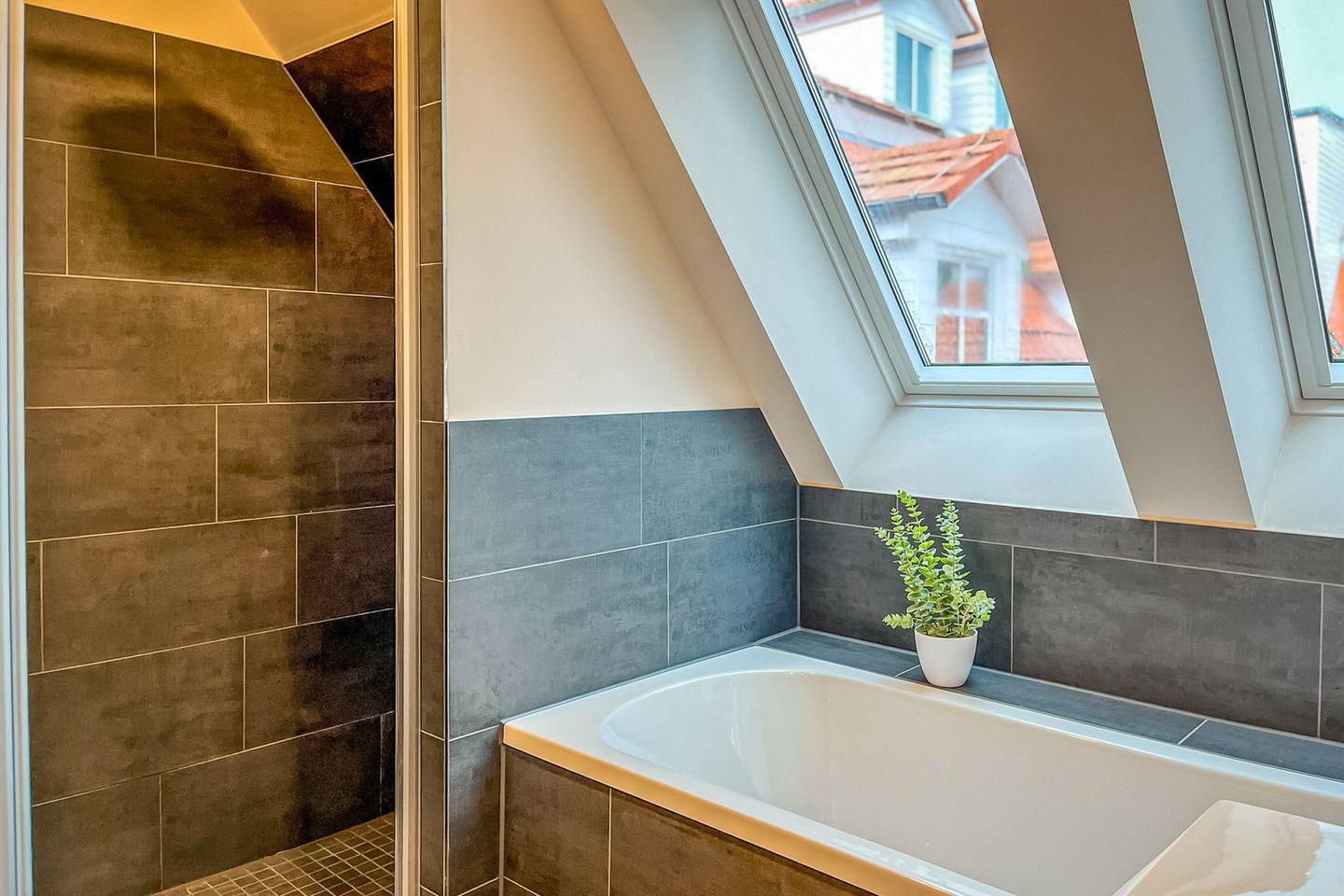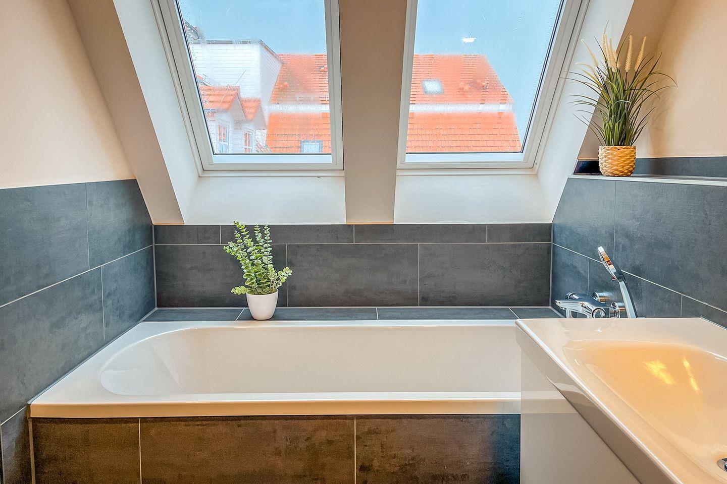 Das Badezimmer bietet neben einer bodengleichen Dusche auch eine Badewanne – ideal für ein entspannendes Bad nach einem Strandspaziergang. Das WC ist separiert.