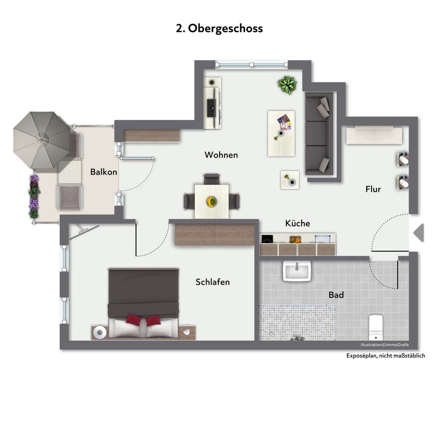 Die Ferienwohnung Nr. 58 in der strandnahen Anlage Baltischer Hof ist eine 2-Zimmer-Wohnung für bis zu 3 Personen und liegt im 2. Obergeschoss. Sie verfügt über ein Wohnzimmer mit integrierter Küchenzeile, ein Bad mit Dusche, ein Schlafzimmer und einen Balkon.
