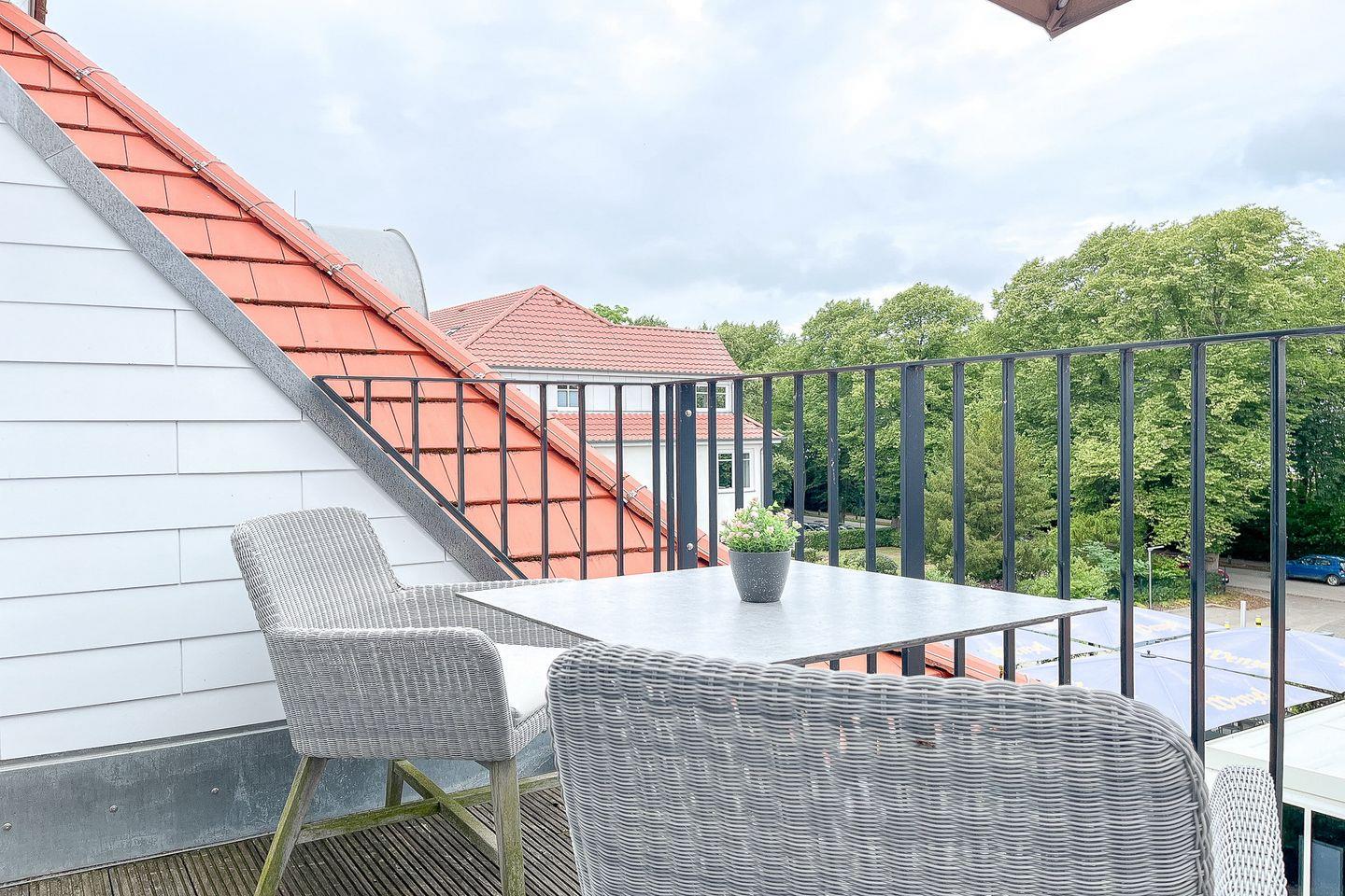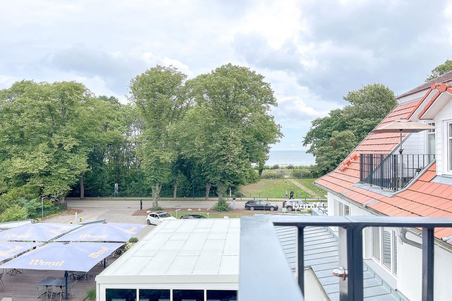 Ein besonderes Highlight dieser Wohnung ist der möblierte Balkon mit Meerblick – ideal für ein Frühstück an der frischen Luft oder ein Glas Wein am Abend.