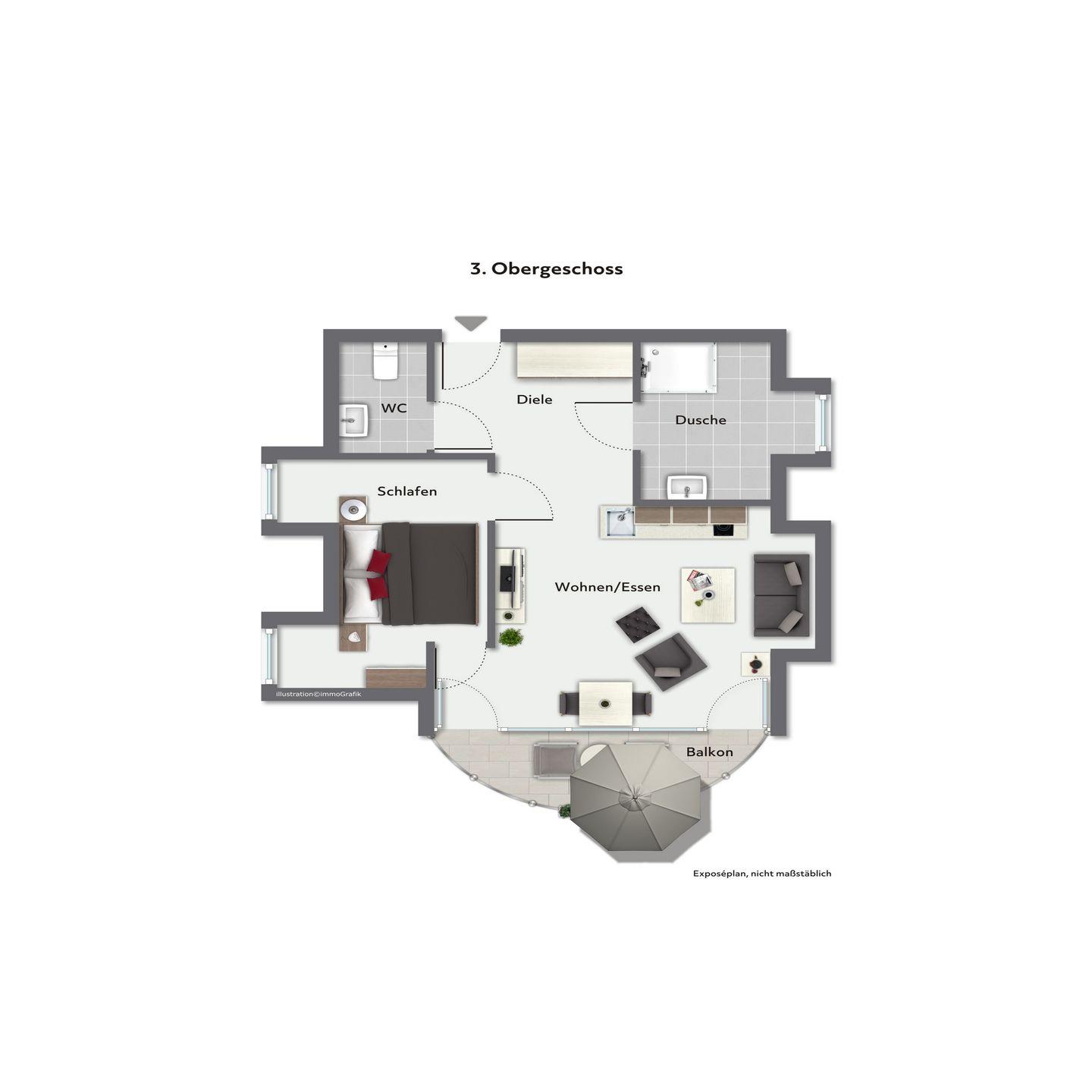 Die Ferienwohnung Nr. 67 in der strandnahen Anlage Baltischer Hof ist eine 2-Zimmer-Wohnung für bis zu 2 Personen und liegt im 3. Obergeschoss. Sie verfügt über ein Wohnzimmer mit integrierter Küchenzeile, ein Bad mit Dusche, ein Schlafzimmer und einen Balkon.