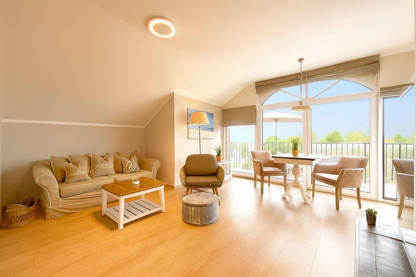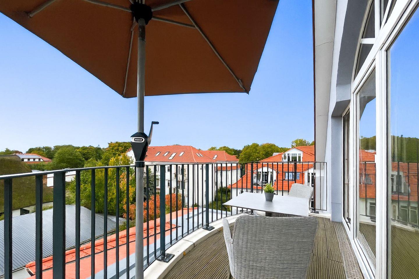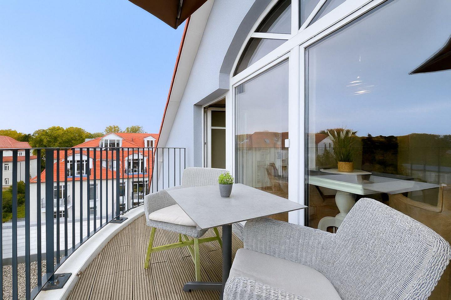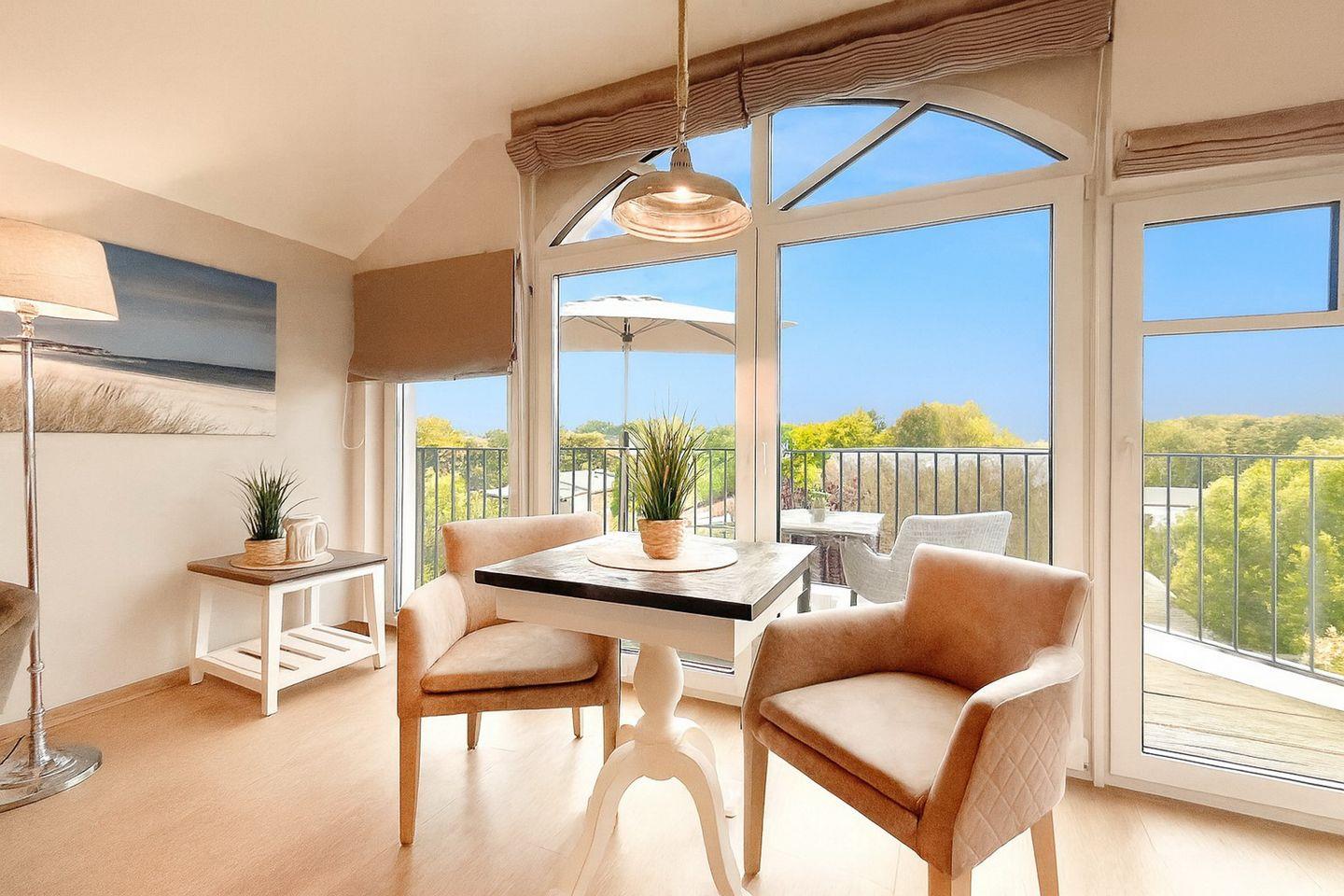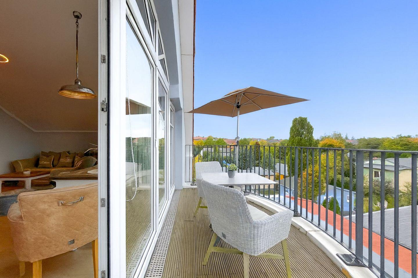 Ein besonderes Highlight ist der möblierte Balkon, mit freiem Blick auf Boltenhagen – genieße Dein Frühstück oder einen entspannten Abend an der frischen Luft.