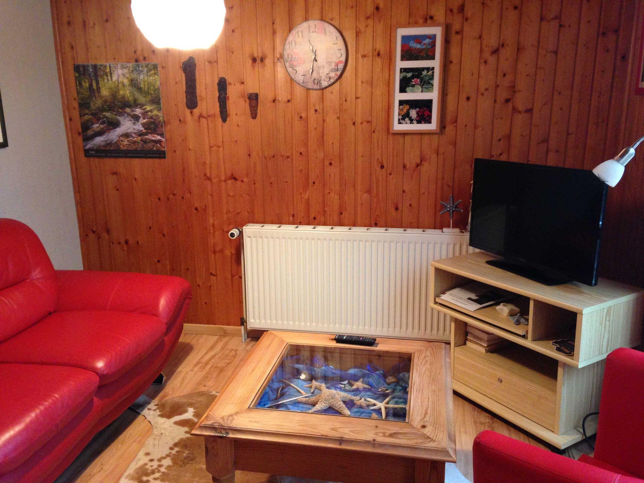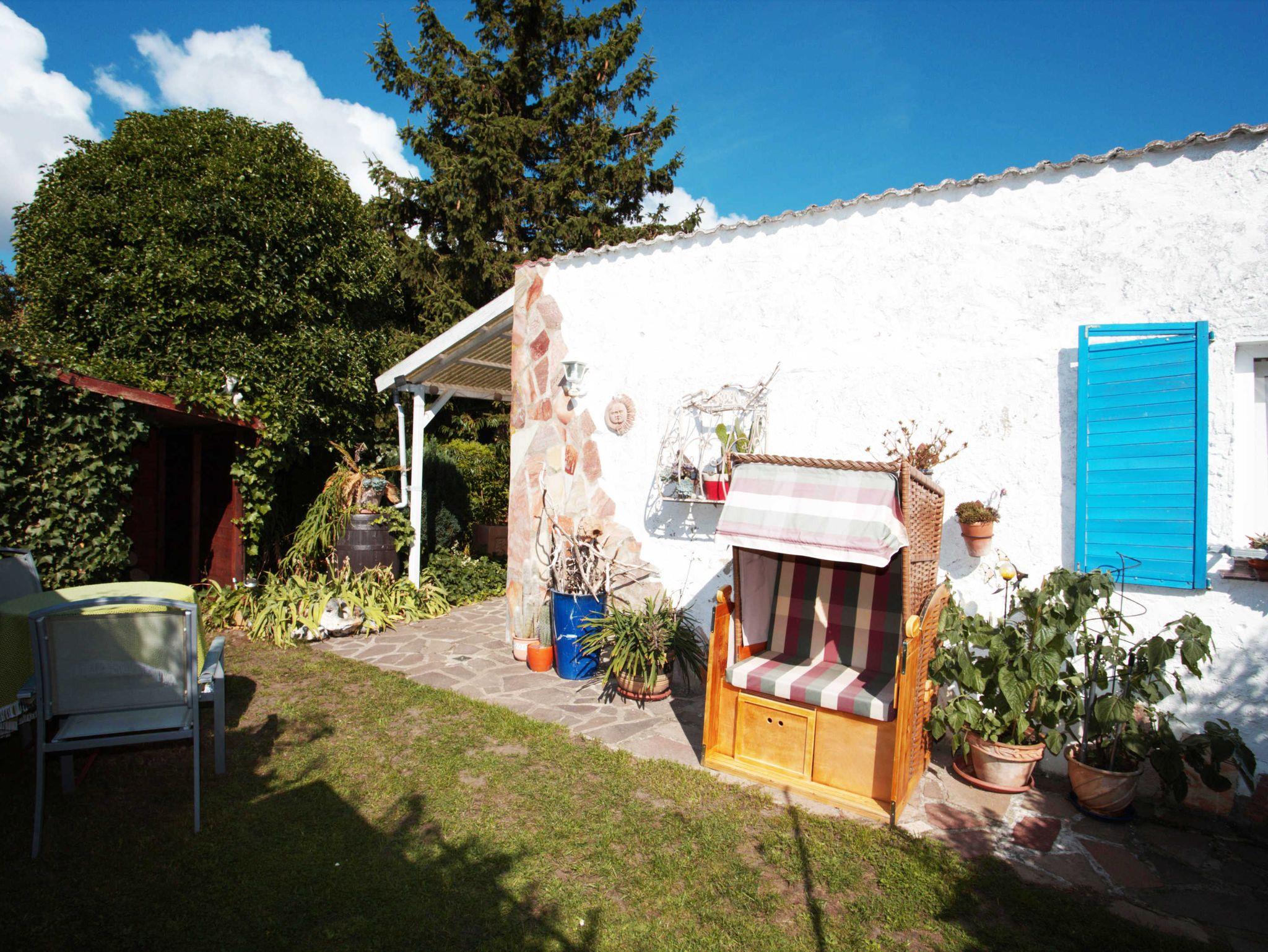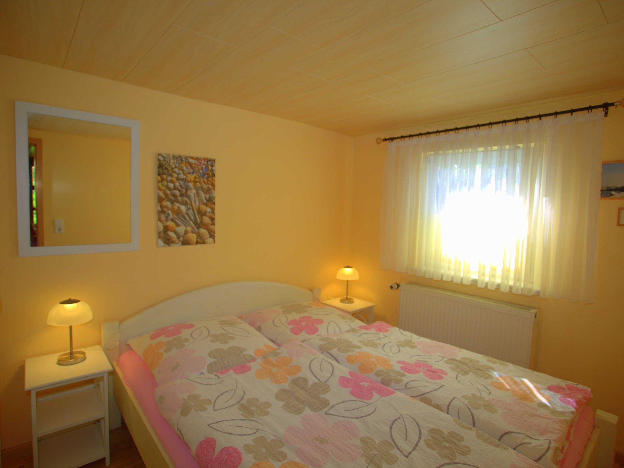 Die kleine Ferienwohnung ist mit 30qm bestens für zwei Personen geeignet. Sie besteht aus einem Wohn- und einem Schlafraum. In der Ferienwohnung gibt es ein Bad mit Dusche. In den gemütlich eingerichteten Wohnraum ist eine Miniküche integriert. Dort sind Kühlschrank und Kaffeemaschine vorhanden. Eine große Liegewiese mit Sonnenliegen und Gartenmöbeln können alle Urlaubsgäste nutzen.