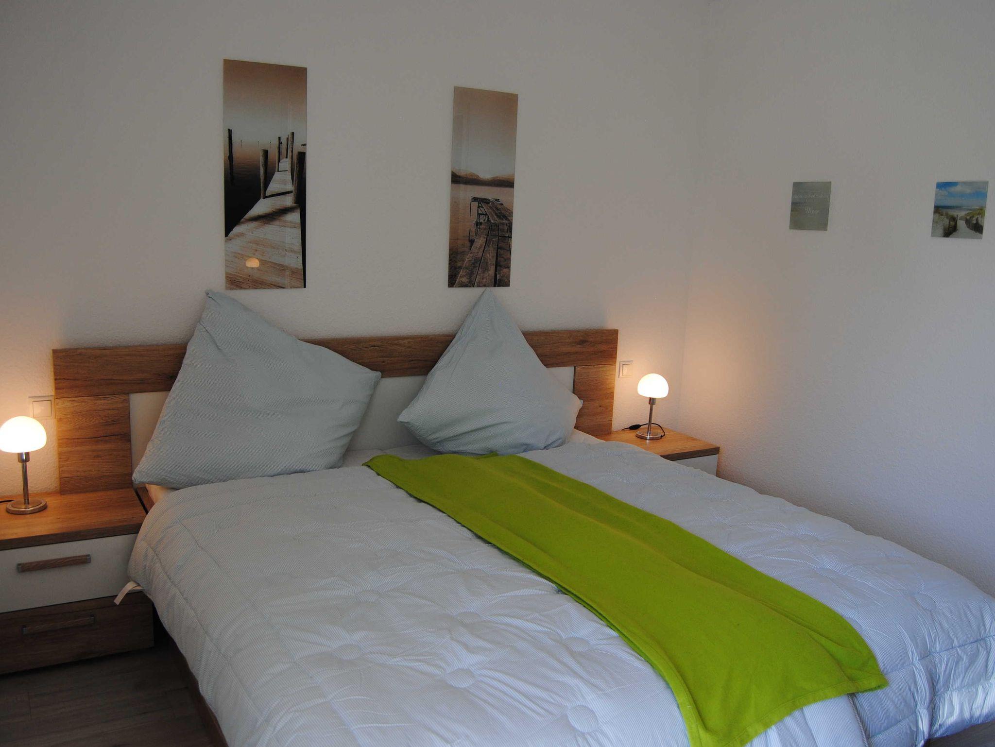 Die Ferienwohnung verfügt über ein Doppelbett im Schlafzimmer und eine Schlafcouch im Wohnbereich. Ein Kinder-/ Babybett kann zugestellt werden.