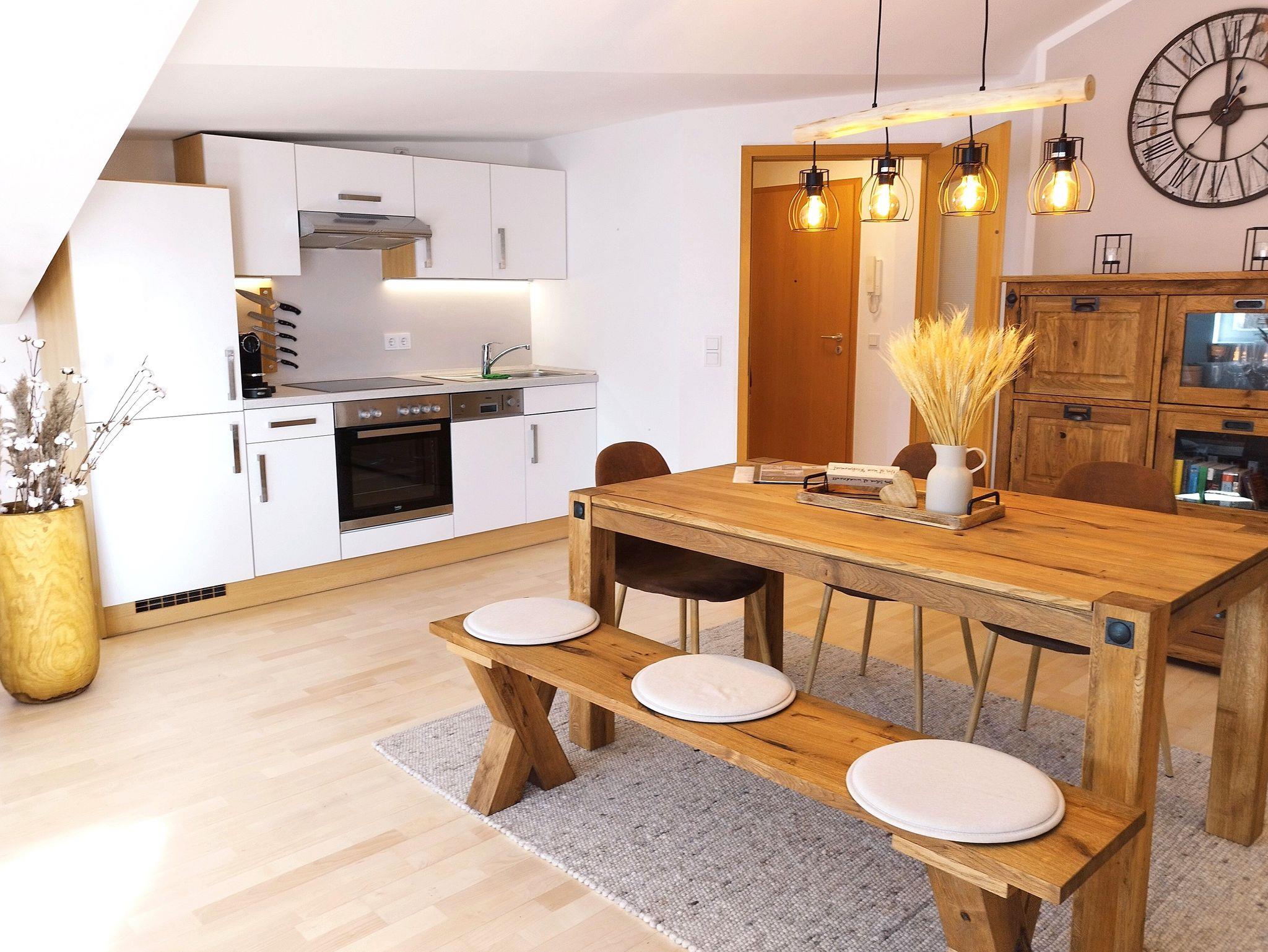 voll ausgestattete Küche mit Spülmaschine, Backofen & Herd, Kühlschrank, Mirkrowelle, Kaffeepadmaschine