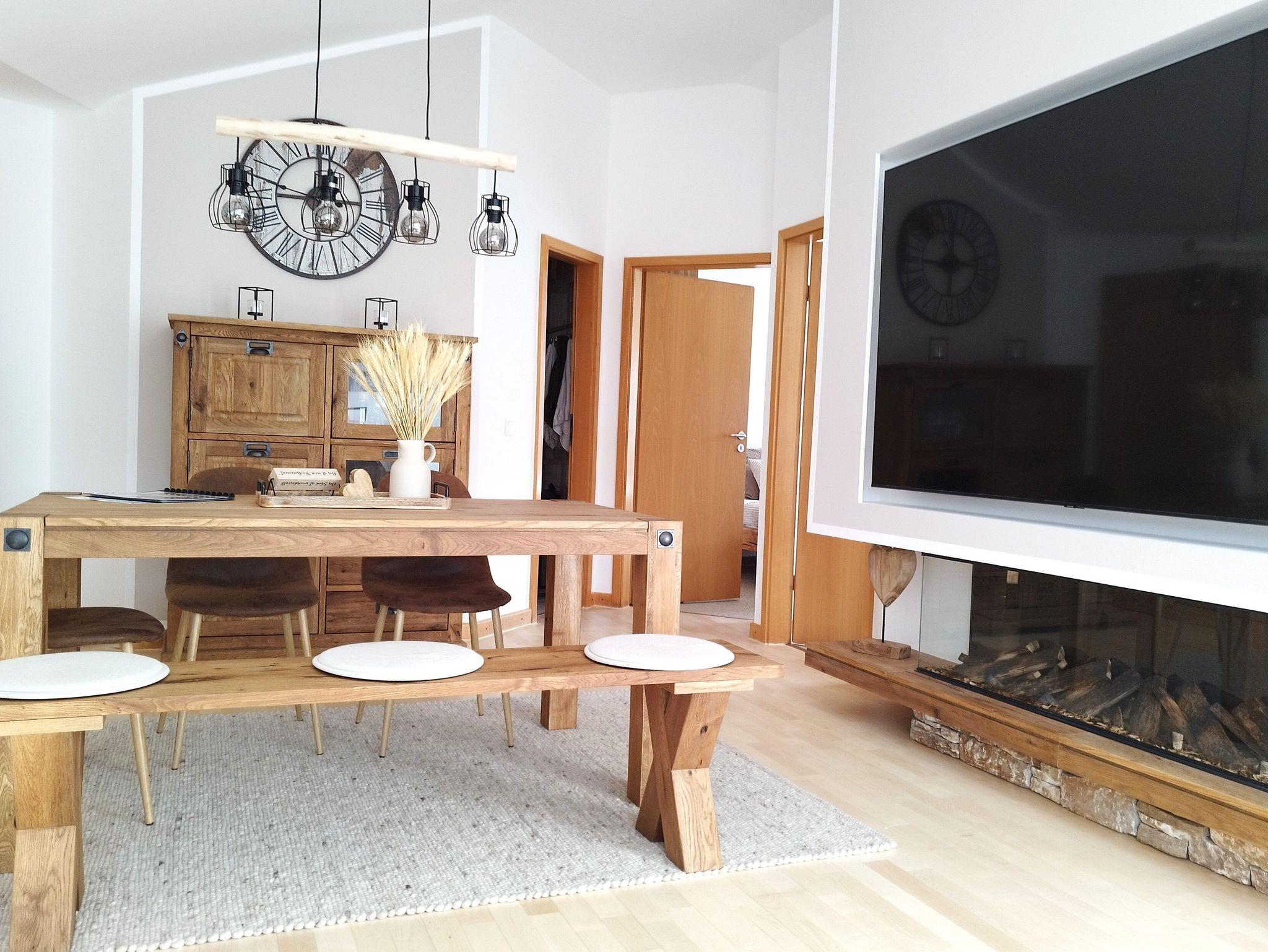 Im Wohnbereich befindet sich ein großzügiger Couchbereich mit Heimkino und Elektrokamin, ein Essbereich und außerdem ist eine Küche mit Kühlschrank, Geschirrspüler, Backofen, Kaffeemaschine, Mikrowelle, Wasserkocher, Toaster, Geschirr, Besteck etc. integriert.