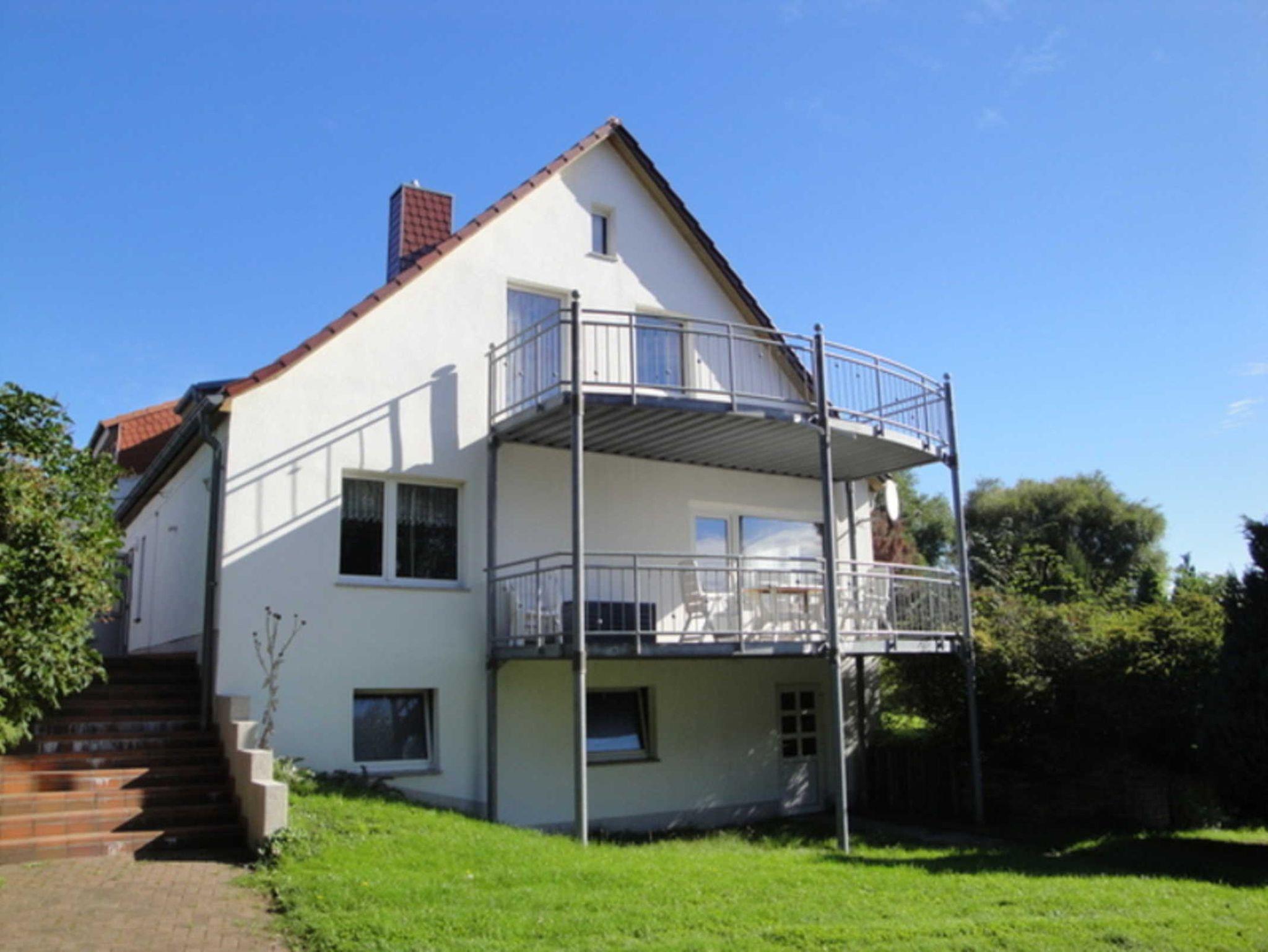 Die Ferienwohnung besteht aus dem Erdgeschoß einer Doppelhaushälfte. Auf dem Balkon aus können Sie Ihr Frühstück bei Sonnenschein mit Aussicht auf den Breeger Bodden genießen.