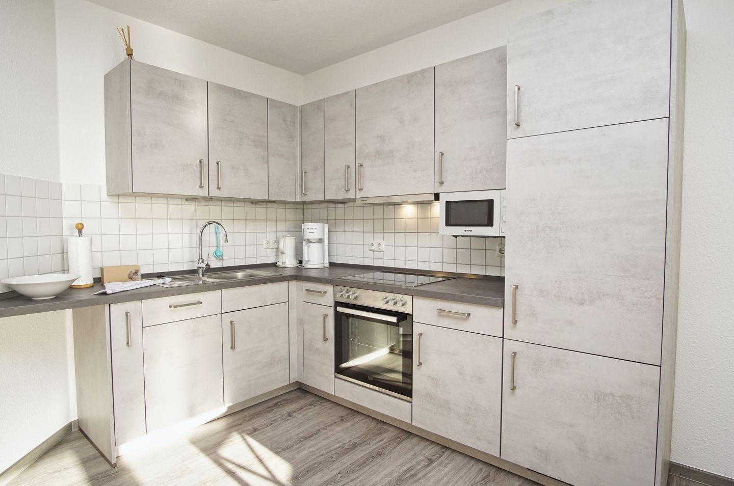 KÜCHE // offene Küche, 4-Platten Ceranherd, Spülmaschine, Kühlschrank mit Gefrierfach, Backofen, Mikrowelle, Toaster, Wasserkocher, Kaffeemaschine, reichlich Besteck, Geschirr und Küchenutensilien ++