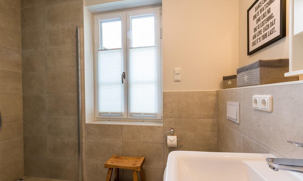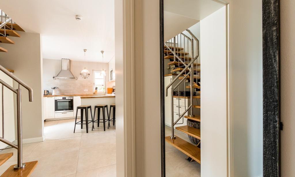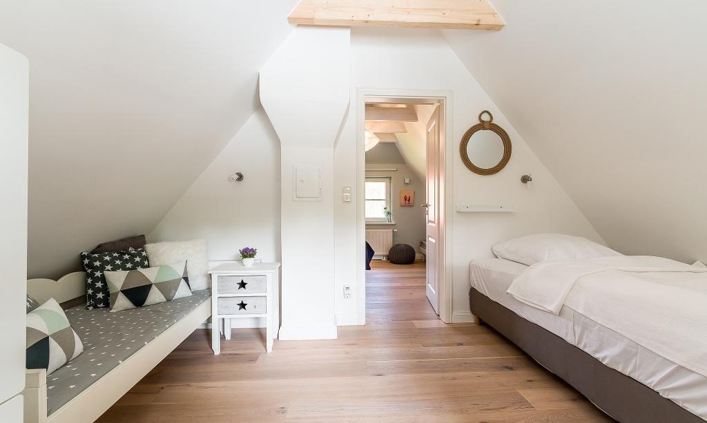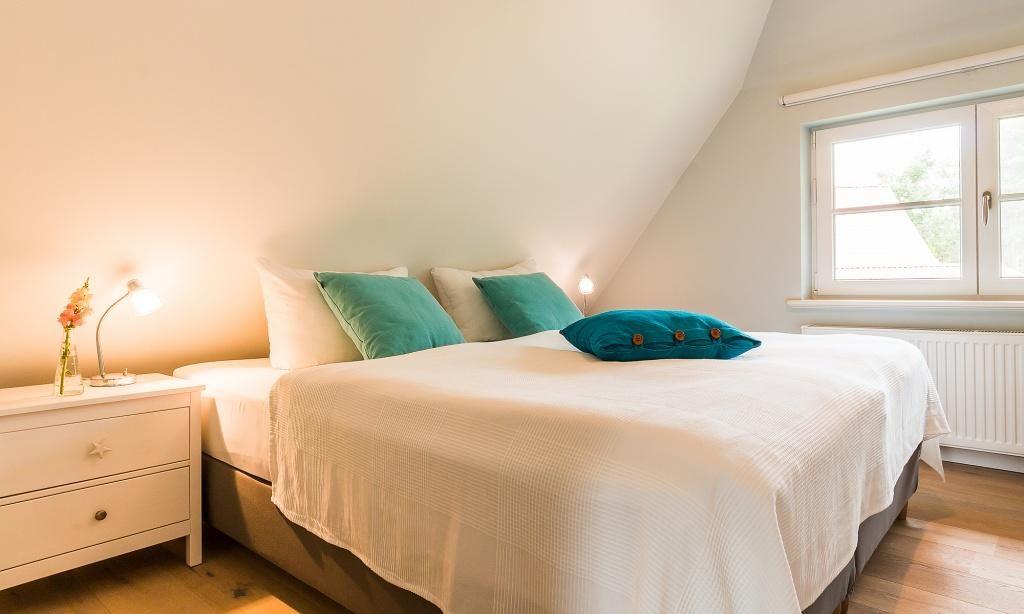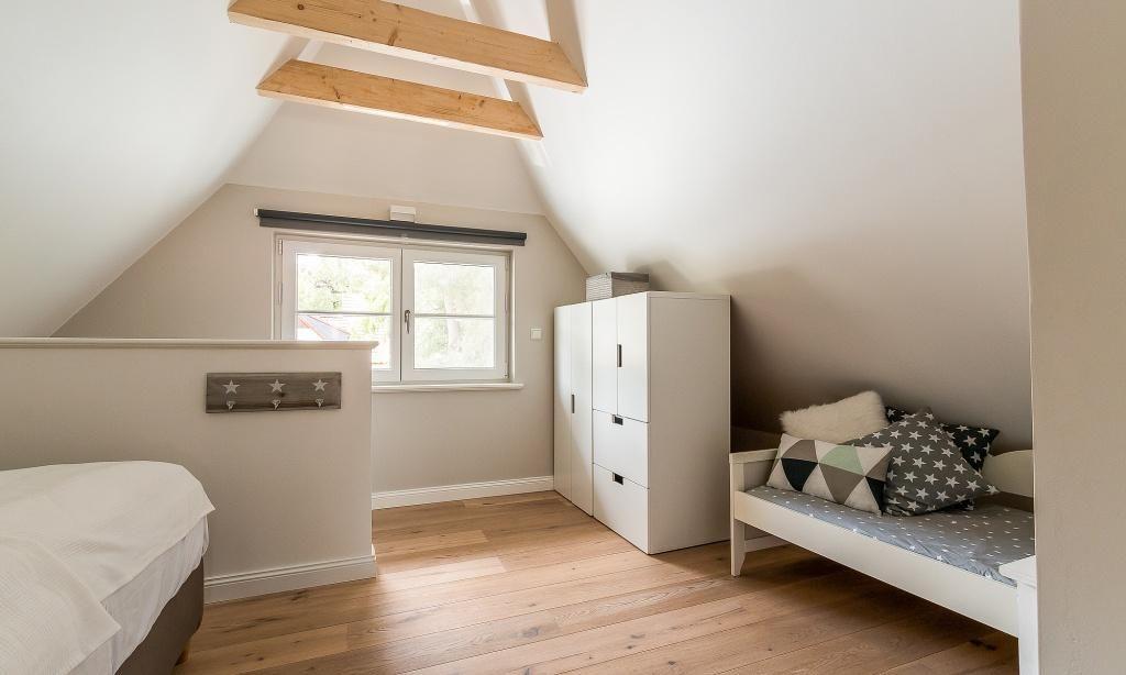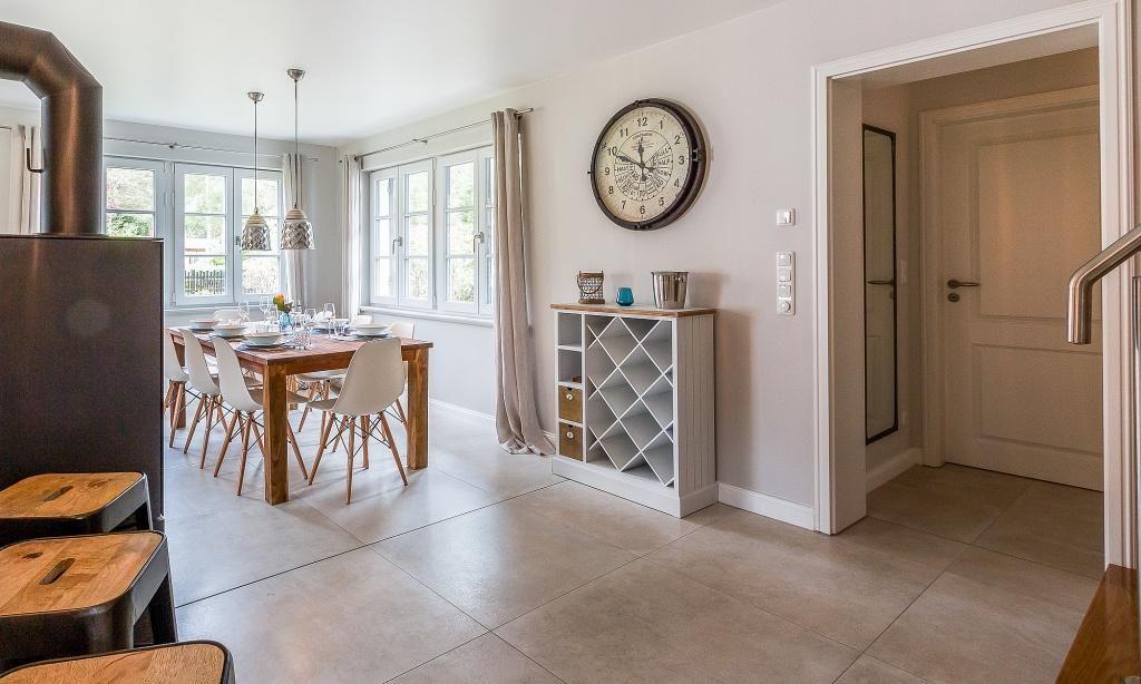 Das traumhafte Ferienhaus begeistert von außen wie von innen und passt sich mit seinen harmonisch abgestimmten Möbeln und Farben perfekt an die strandnahe Umgebung an. Im Erdgeschoss erwartet dich ein modern eingerichteter Wohn- und Essbereich. Der großzügige Esstisch und die gemütliche Couch am Kamin bieten gleich mehrere Sitz- und Kuschelgelegenheiten. Die offen gestaltete Küche ist hochwertig ausgestattet und besitzt alles, um auch im Urlaub mit Genuss und Freude zu Kochen. Ein Schlafzimmer mit einem Boxspring-Doppelbett sowie zwei Tageslichtbäder, jeweils mit Dusche/WC befinden sich ebenfalls im Erdgeschoss. Über eine Treppe gelangst du vom Wohnbereich ins Obergeschoss. Hier befinden sich ein weiteres komfortables Schlafzimmer mit einem Doppelbett sowie ein liebevoll gestaltetes Durchgangszimmer mit einem Boxspring-Einzelbett und einem Juniorbett.