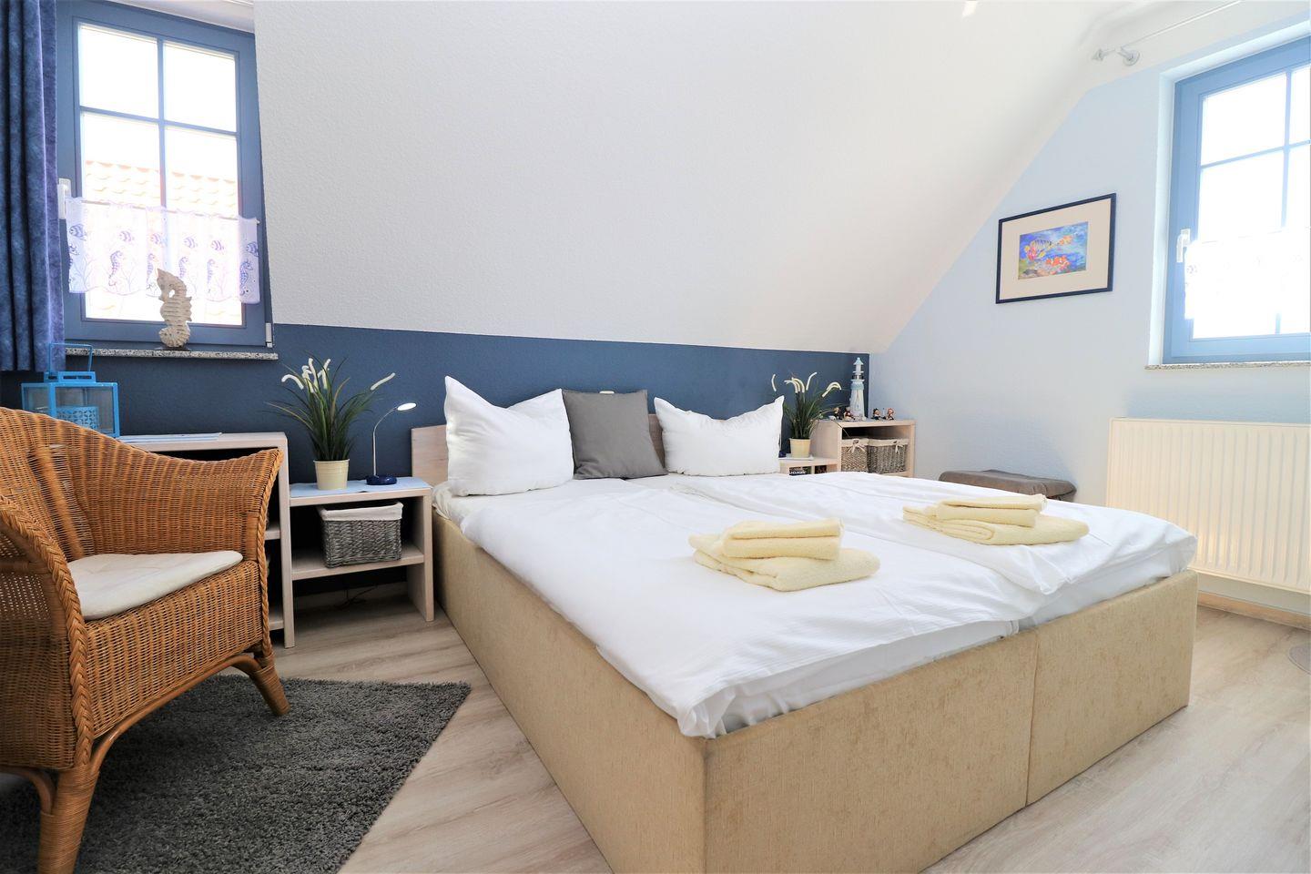 Ein gemütliches Ferienhaus auf einem 400m² großen Grundstück, direkt am Dünenwald in Dierhagen-Strand gelegen, mit unverbautem Weitblick und Ruhe pur. Das Haus bietet Platz für maximal 4 Personen und verfügt über zwei Terrassen – eine nach Osten und eine nach Westen ausgerichtet. Im Erdgeschoss erwärmt eine Fußbodenheizung den Küchenbereich, während das Wohnzimmer mit einem einladenden Kamin ausgestattet ist. Die moderne Küche lädt zum Kochen ein, und ein Gäste-WC bietet zusätzlichen Komfort. Im Obergeschoss erwarten Sie zwei Schlafzimmer mit Doppelbetten sowie ein Badezimmer mit Dusche, WC und Waschmaschine. Alle Fenster und Türen sind mit Insektenschutz ausgestattet. Haustiere sind erlaubt, aber das Rauchen ist nicht gestattet. WLAN ist vorhanden, für einen bequemen Internetzugang. Im Garten stehen Ihnen ein Strandkorb, Gartenmöbel und ein Grill zur Verfügung. Zudem gibt es zwei PKW-Stellplätz auf dem Grundstück.
