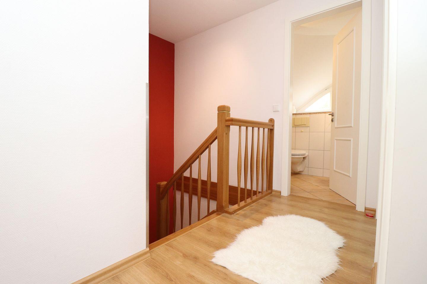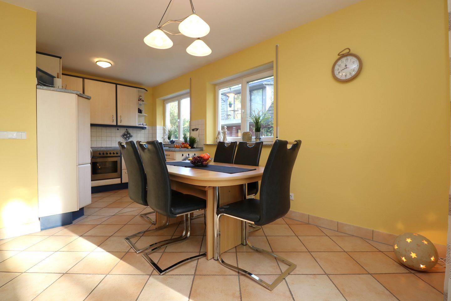 Im Erdgeschoss erwartet Sie ein heller Wohnbereich mit gemütlicher Atmosphäre. Die hochwertige Küchenzeile ist modern ausgestattet und bietet alles, was Sie für die Zubereitung gemeinsamer Mahlzeiten benötigen. Am großzügigen Esstisch lassen sich Frühstück, Abendessen oder gesellige Spieleabende wunderbar genießen. Ein Badezimmer mit Dusche und WC sorgt auf dieser Etage für zusätzlichen Komfort.