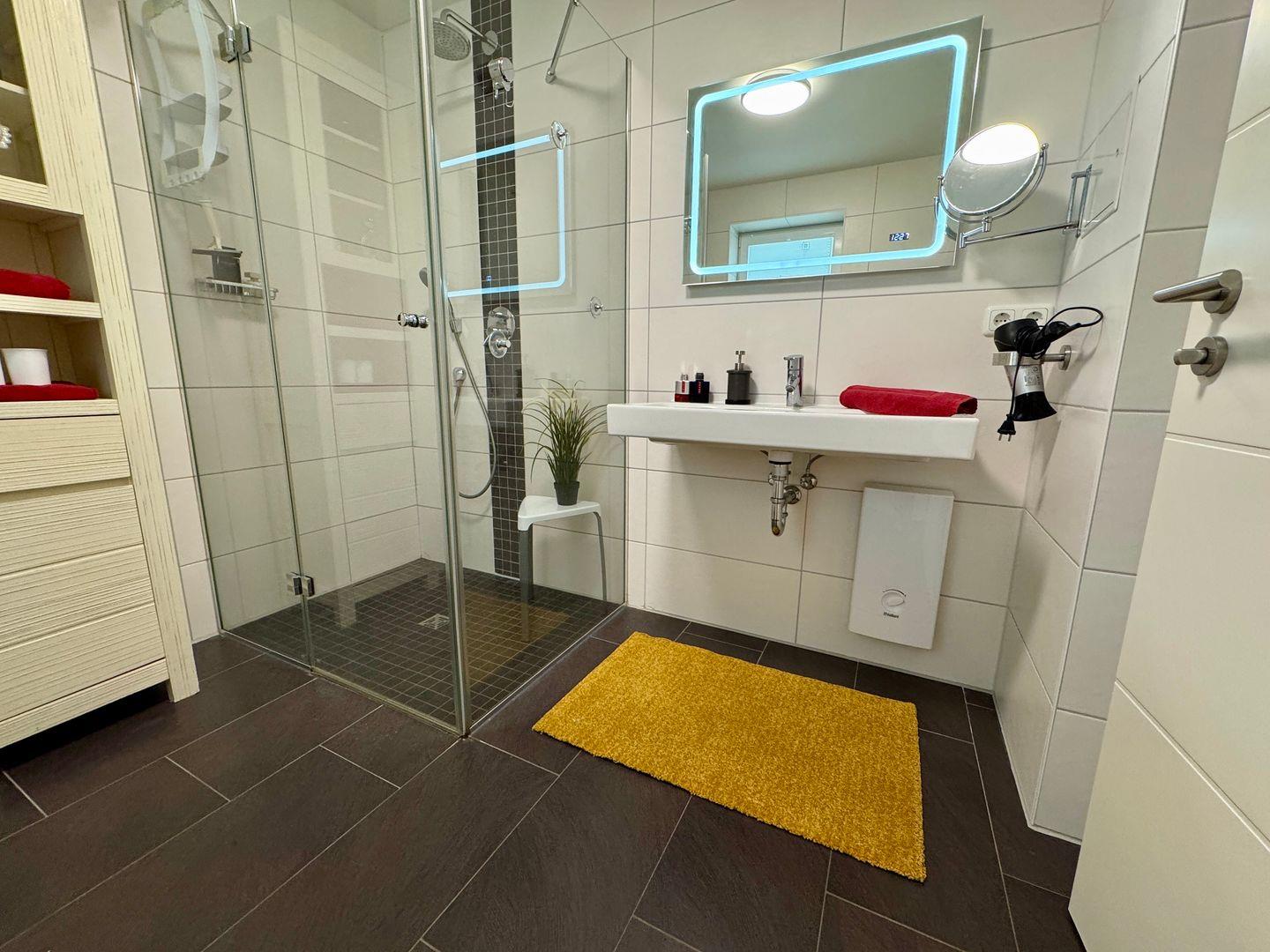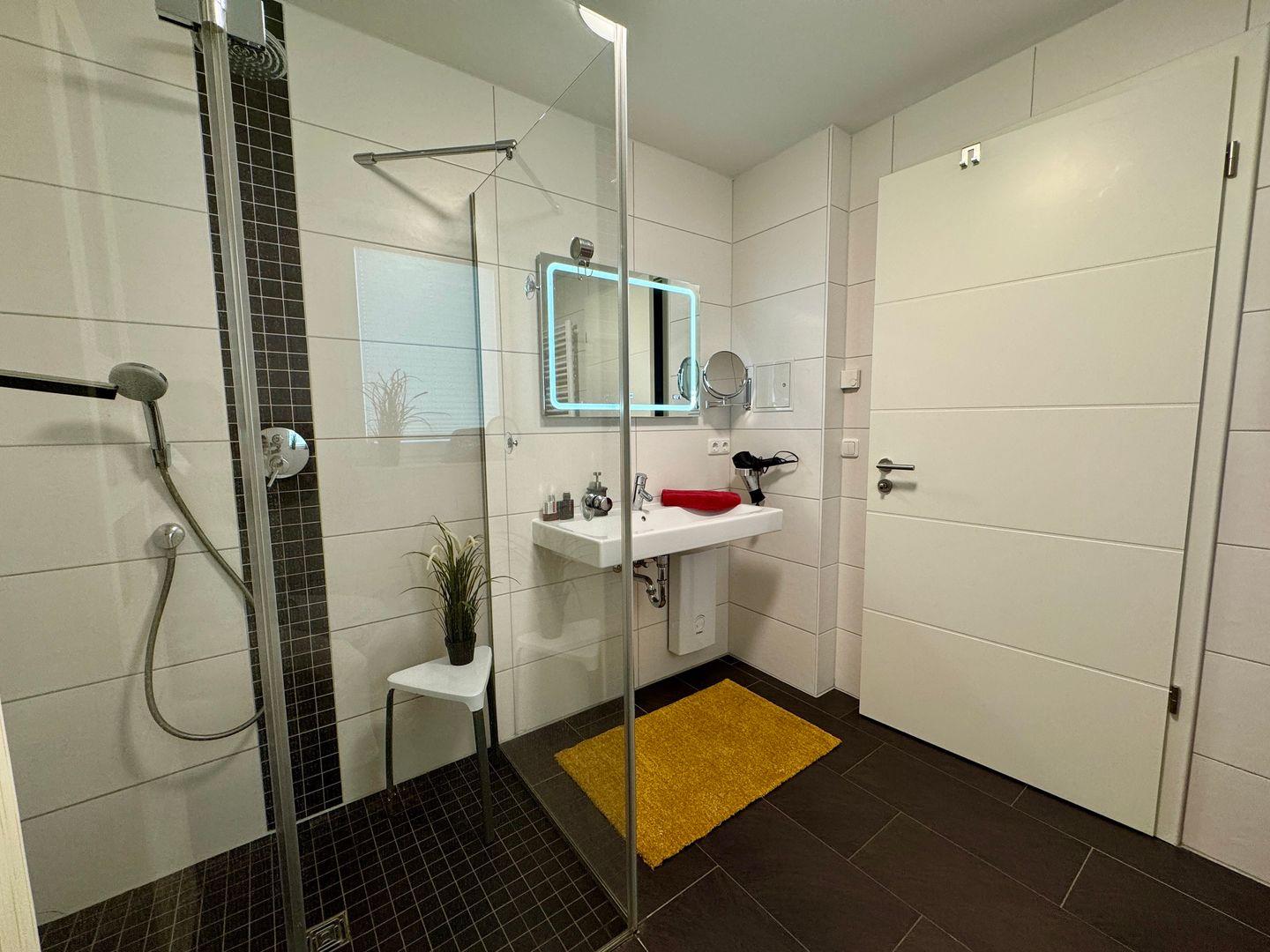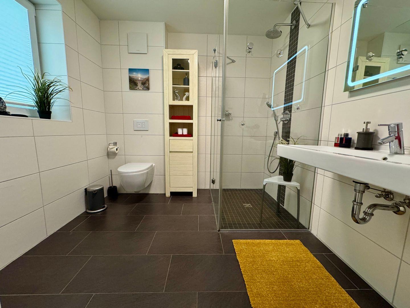 Das moderne Badezimmer ist mit Dusche und WC ausgestattet und rundet den Wohnkomfort des Appartements ab.