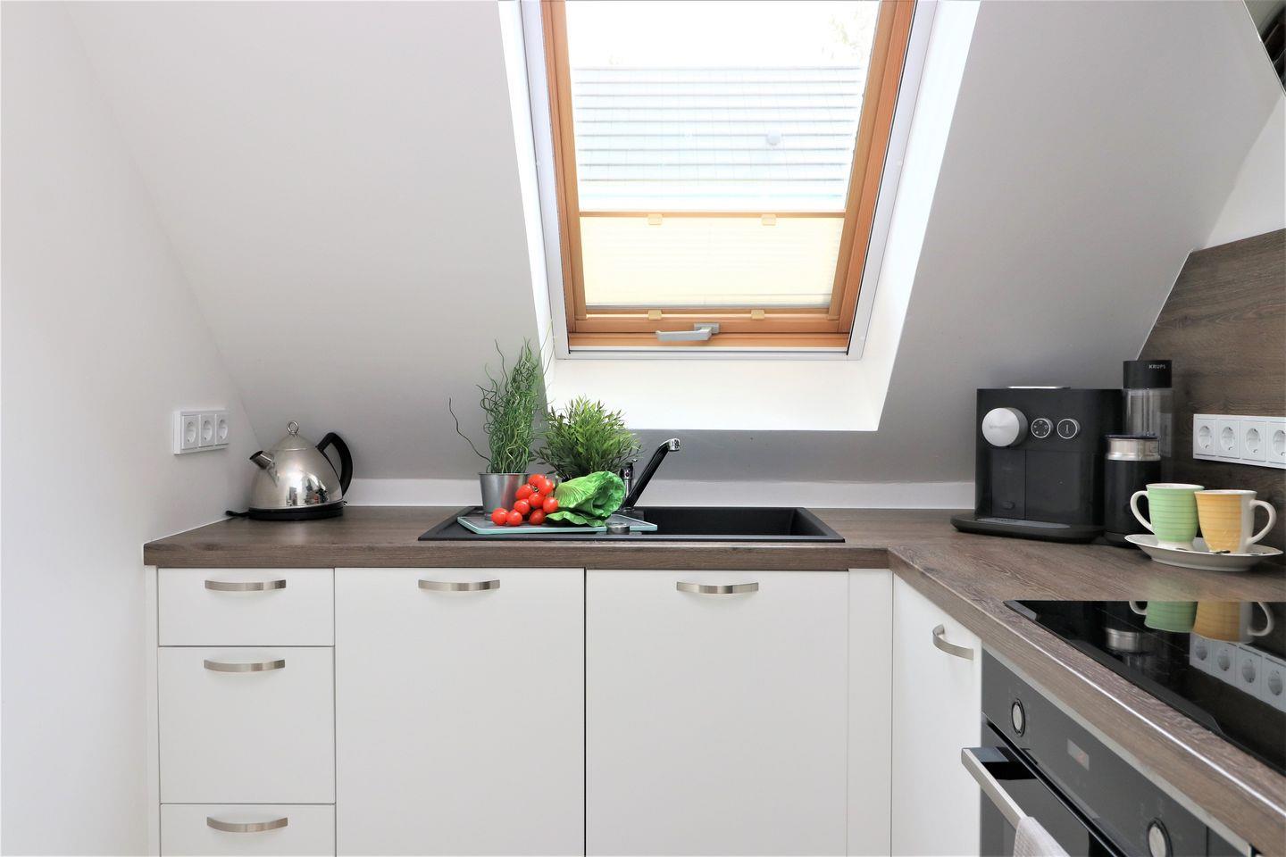 Ein charmantes Dachgeschoss-Appartement für bis zu 4 Personen. Genießen Sie den Komfort eines geräumigen Wohnzimmers, einer voll ausgestatteten Küche mit einer Nespressomaschine und zwei gemütlichen Schlafzimmern – eines mit einem Doppelbett und das andere mit einem Tandembett. Das Badezimmer verfügt über eine erfrischende Dusche und WC, ebenfalls erwartet Sie zusätzlich eine Fußbodenheizung für noch mehr Komfort. Entspannen Sie sich auf der Terrasse und genießen Sie die frische Luft. Bitte beachten Sie, dass Haustiere und Rauchen im Appartement nicht gestattet sind. WLAN steht zur Verfügung, und ein PKW-Stellplatz direkt vor dem Haus sorgt für bequemes Parken. Auf Anfrage können Sie sogar eine E-Ladestation für Ihr Elektroauto dazu buchen. Kosten je nach Fahrzeug, bei einem reinem E-Fahrzeug bis 200kW - 100,-€ / Woche & bei Hybridfahrzeug bis 50kW - 25,-€ die Woche.