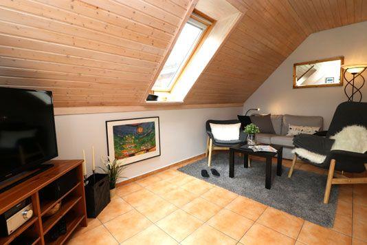 Ein charmantes Maisonette-Appartement im Obergeschoss für bis zu 5 Personen mit einem Balkon Richtung Süden. Treten Sie ein und lassen Sie sich von einem gemütlichen Wohnzimmer mit einer praktischen Küchenzeile begrüßen. Das erste Schlafzimmer mit einem komfortablen Doppelbett lädt zur Entspannung ein, und das Bad mit Dusche/WC steht zu Ihrer Verfügung. Über eine Treppe gelangen Sie zum Spitzboden, wo Sie ein weiteres Schlafzimmer mit einem Doppelbett und einer Schlafcouch erwartet. Ideal für Familien und Gruppen. Wenn Si etwas Wäsche waschen müssen, stehen Ihnen gegen Gebühr eine Waschmaschine und ein Trockner im Haus zur Verfügung. Haustiere sind willkommen, jedoch ist Rauchen im Appartement nicht gestattet. Genießen Sie das WLAN für Ihre Internet-Bedürfnisse und parken Sie Ihren PKW bequem direkt vor dem Haus.