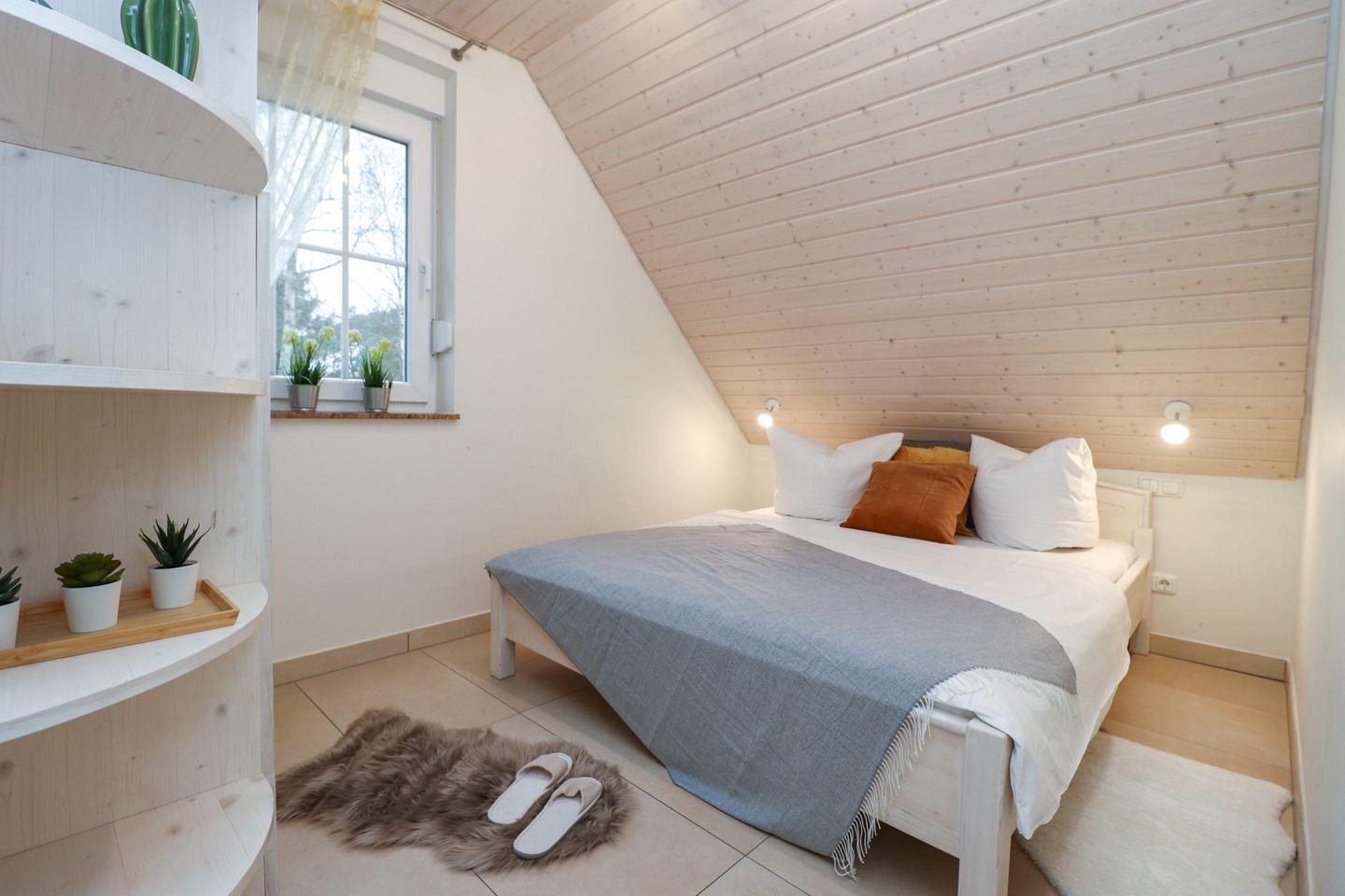 Ein charmantes Maisonette-Appartement mit Südterrasse, ideal für bis zu 4 Personen. Im Erdgeschoss befindet sich ein gemütliches Wohnzimmer mit einer Küchenzeile. Im Obergeschoss erwarten Sie zwei Schlafzimmer, eines mit einem großzügigen Doppelbett (1,80m) und das andere mit einem komfortablen Doppelbett (1,40m). Das Badezimmer verfügt über eine Dusche, eine Badewanne, eine Waschmaschine und ein WC für Ihren Komfort. Rauchen ist in der Wohnung nicht gestattet, aber Haustiere sind Herzlich Willkommen. Genießen Sie kostenloses WLAN und die angenehme Fußbodenheizung während Ihres Aufenthalts. Ein Parkplatz steht Ihnen direkt am Haus zur Verfügung.